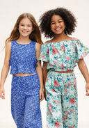 Pyjamas 2-Pack Ribbed Floral Print Navy White Ages 3-15 New