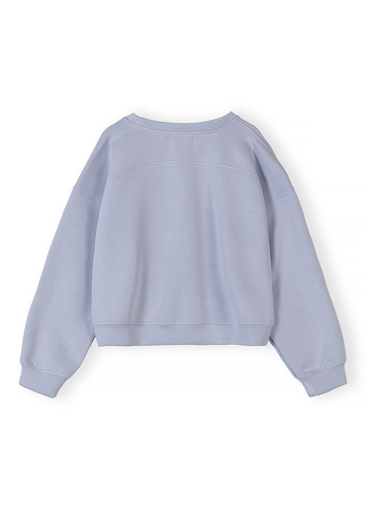 Stylisches Damen-Sweatshirt in einfarbigem Blau, erhältlich in den Größen XS bis XL. Dieses elegante Stück besteht aus glattem Viskosestoff mit bestickten Details auf der Vorderseite und ist perfekt für legere Outfits in kühleren Jahreszeiten.