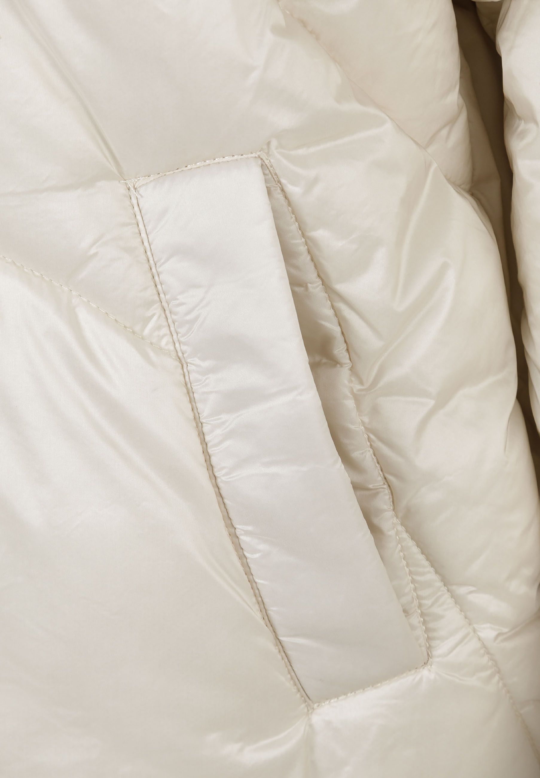 Kurze Steppjacke für Damen mit grauem Finish und dezentem Glanzeffekt sowie geschwungenen Steppnähten. Die Jacke ist für den lässigen Outdoor-Einsatz konzipiert und eignet sich für Herbst- und Wintersaisons.