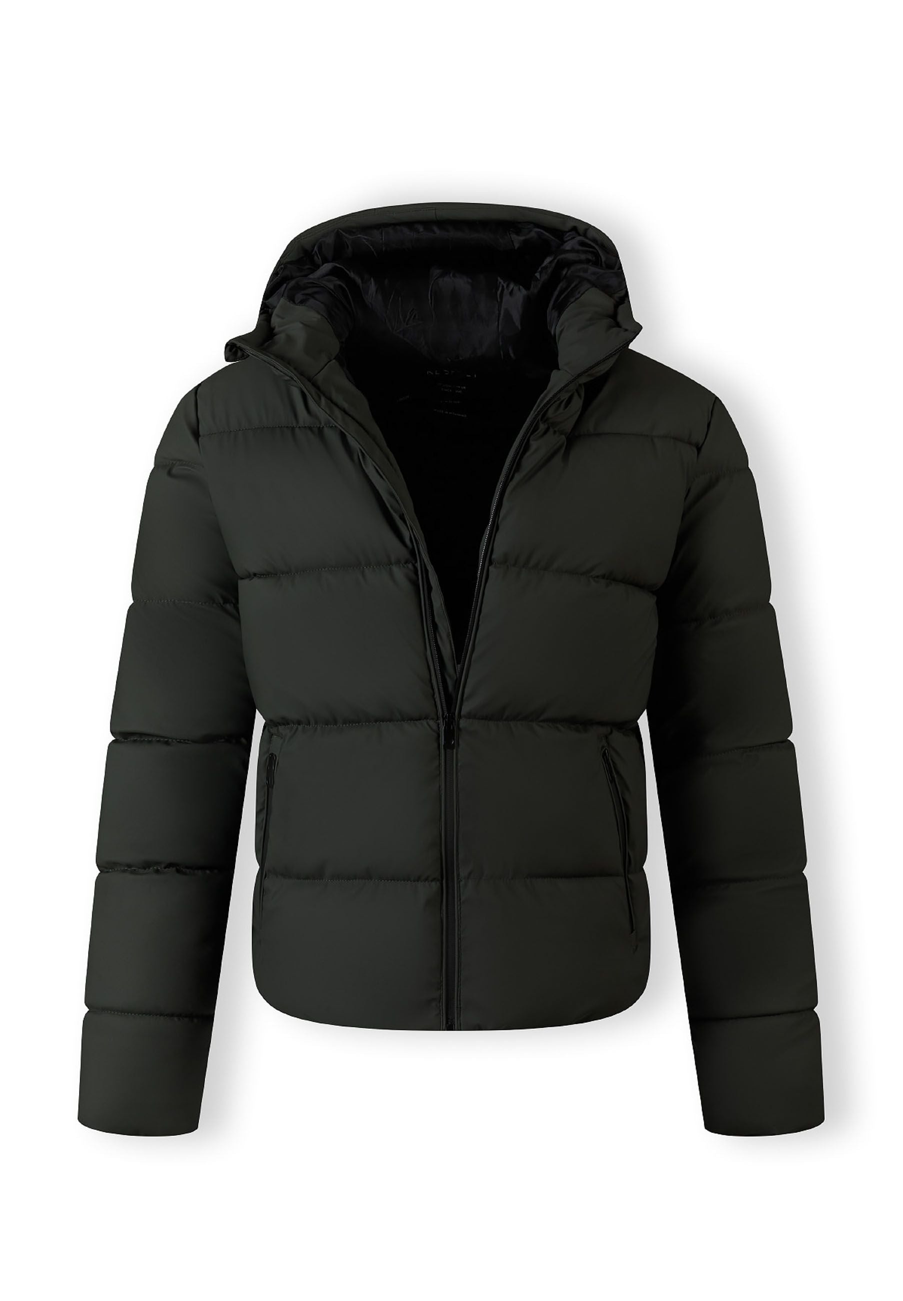 Herren Steppjacke mit Kapuze, Reißverschlusstaschen, Khaki
