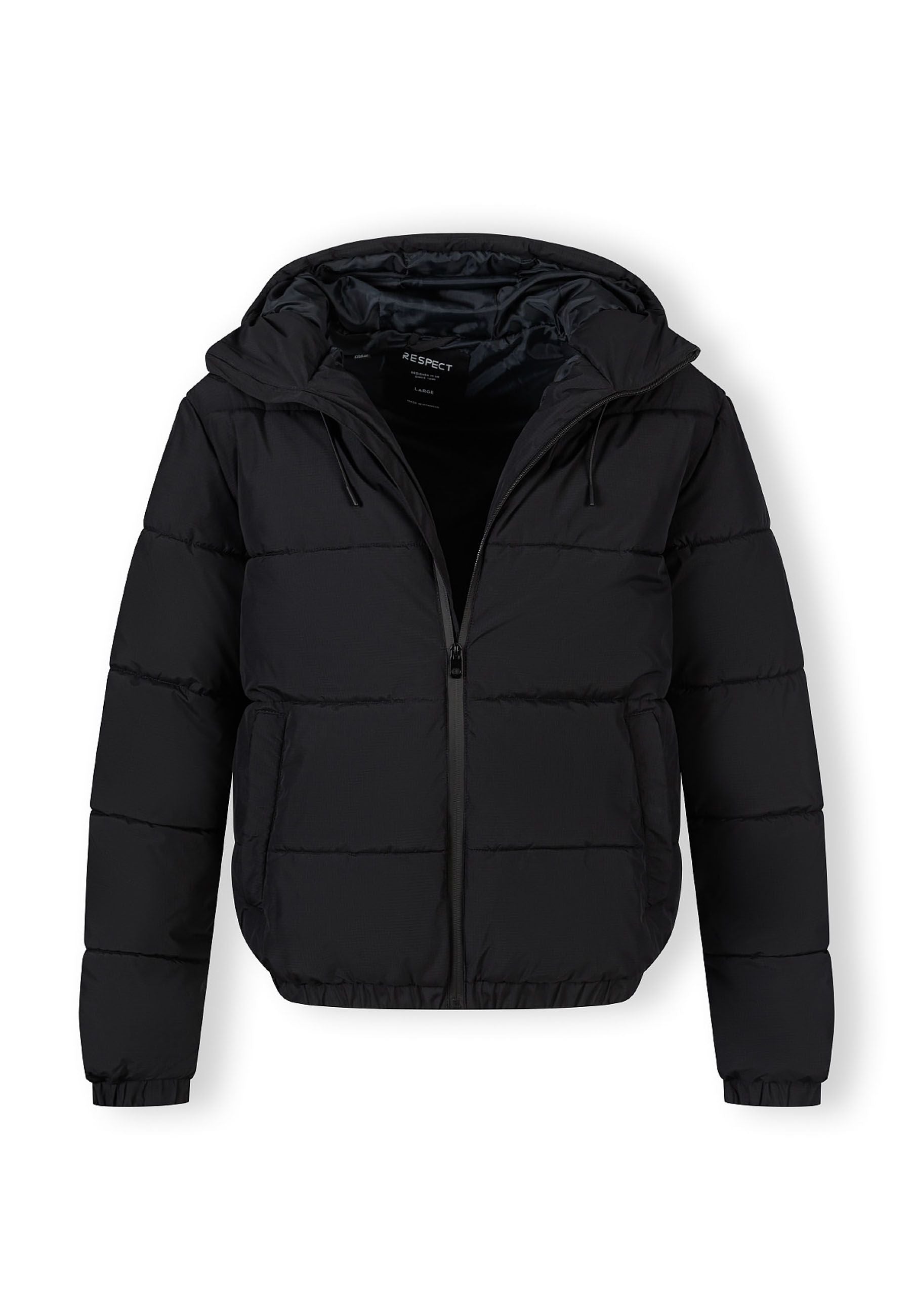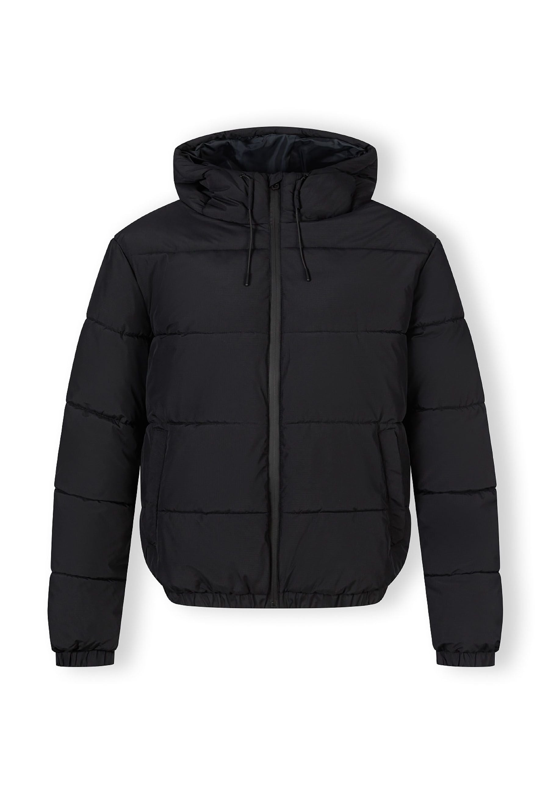 Herrenjacke aus Ripstop-Gewebe, entworfen für den praktischen Außeneinsatz. Die Jacke richtet sich an Männer und besteht aus einem robusten Ripstop-Stoff, der reißfest ist und für den täglichen Gebrauch langlebig bleibt. Die Hauptfarbe ist Schwarz mit einem schlichten, minimalistischen Stil und einer schlanken Passform. Wichtige Ausstattungsmerkmale sind ein hoher Kragen und eine verstellbare Kapuze für zusätzlichen Schutz vor Wind und wechselhaftem Wetter. Die Jacke verfügt über elastische Bündchen und einen elastischen Saum, die für eine enge Passform sorgen und Wärme speichern. Sie hat vorne Reißverschlusstaschen zur sicheren Aufbewahrung kleiner Gegenstände. Ein Markenabzeichen am Ärmel setzt ein dezentes Detail. Die Jacke ist windabweisend und eignet sich für Übergangszeiten und unterschiedliche Witterungsbedingungen.