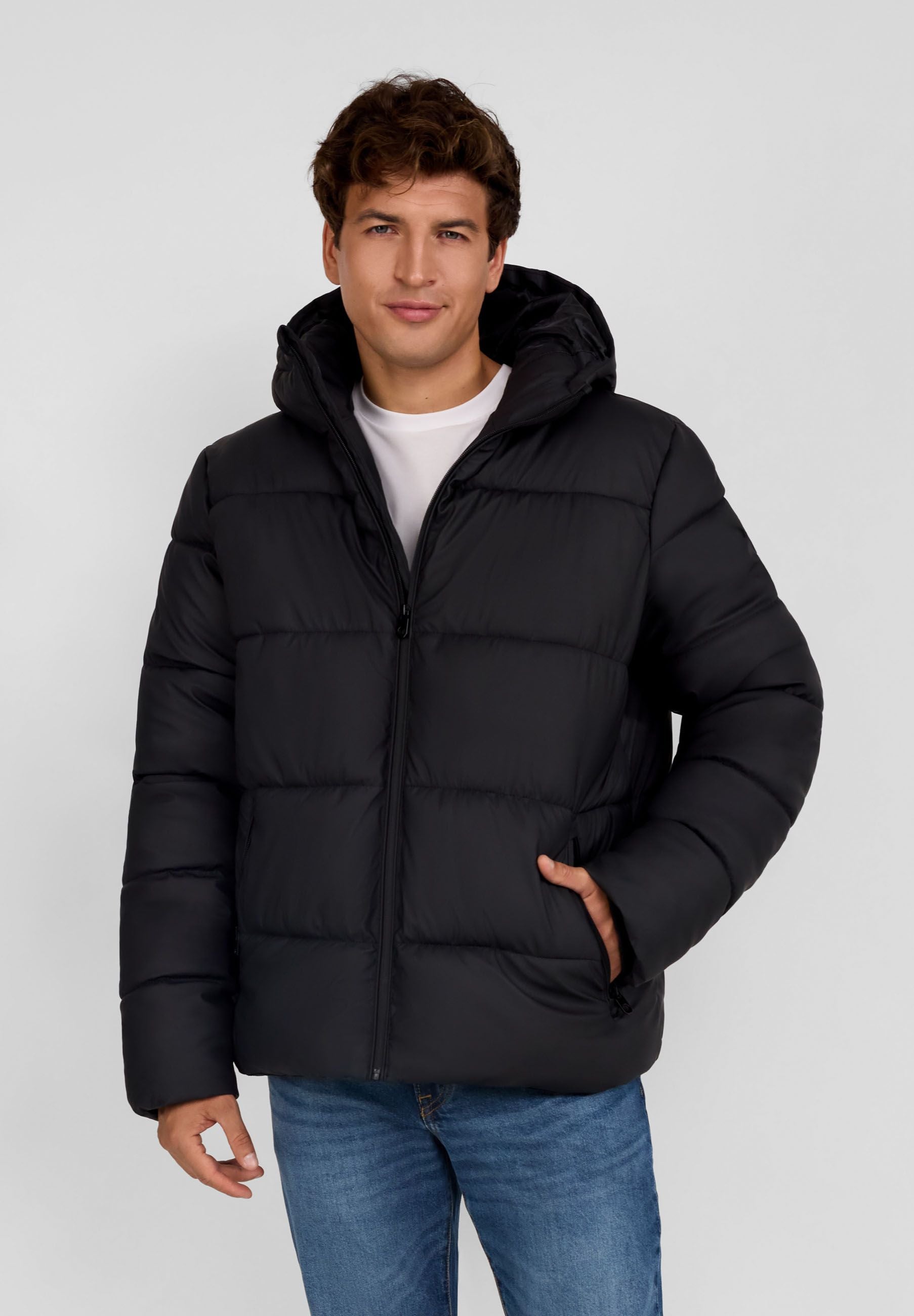 Herren PU-Jacke mit Reißverschlusstaschen schwarz