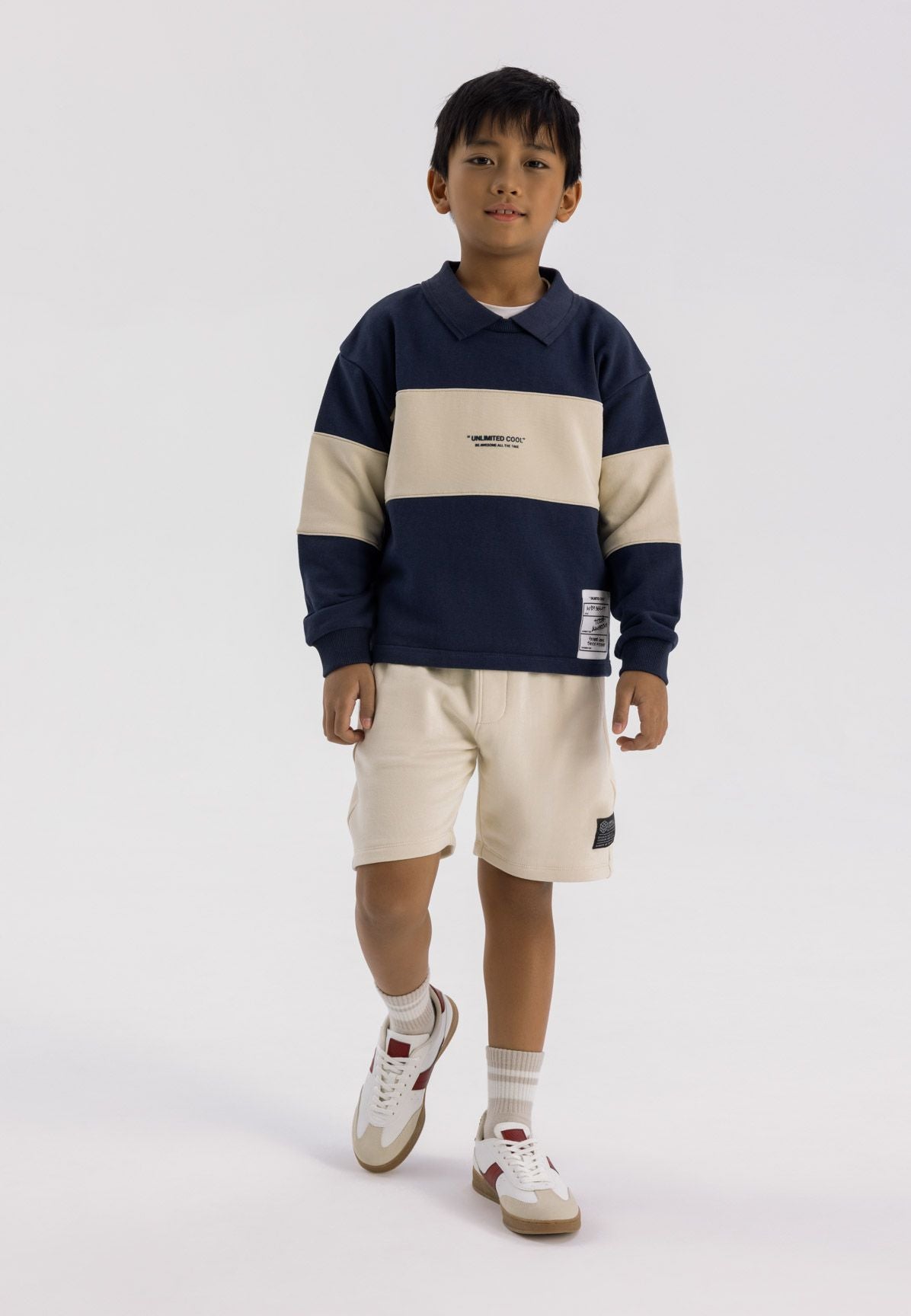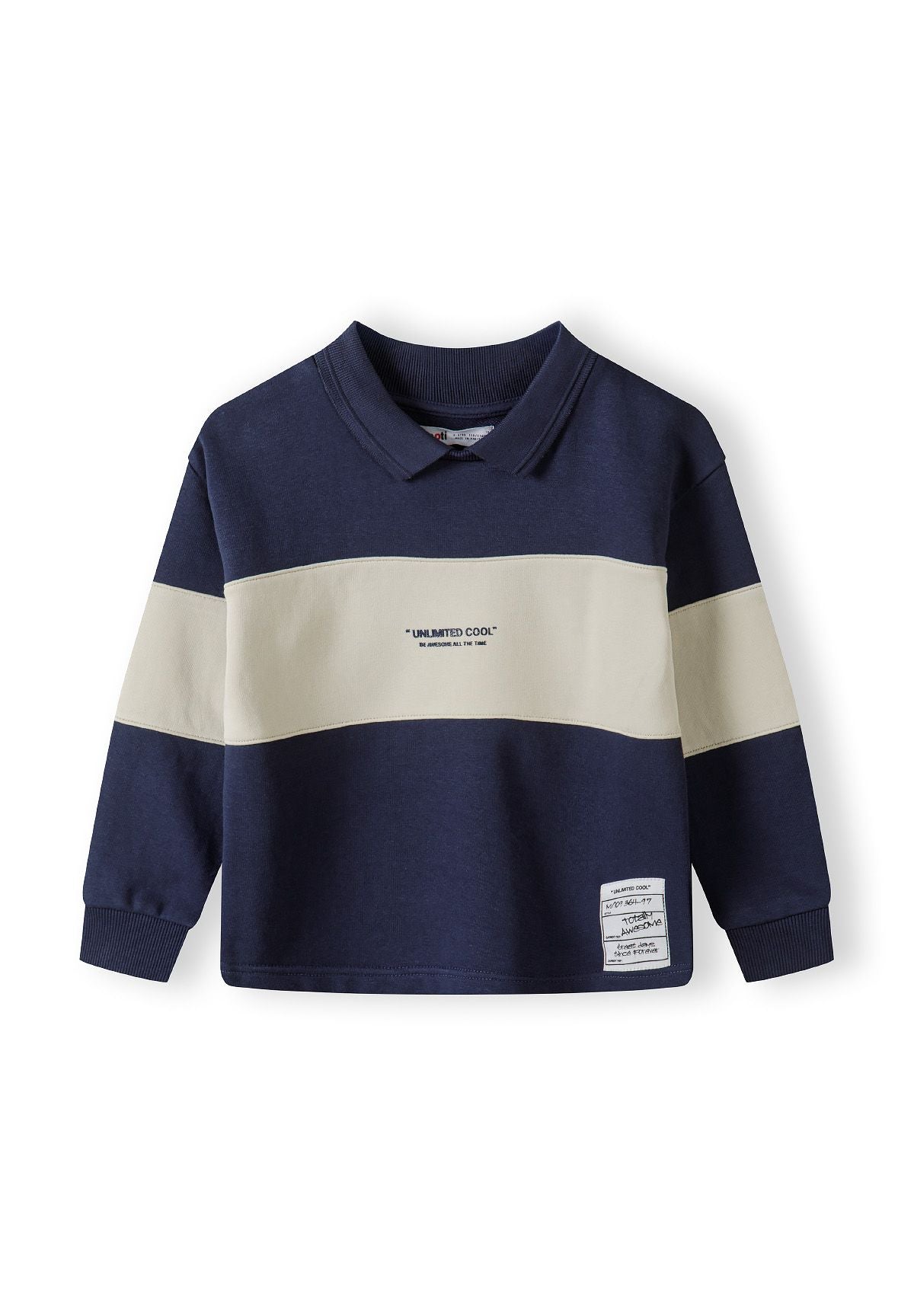 Hergestellt aus weichem Fleece, sorgt dieser marineblaue Jungenpullover für Wärme und ein angenehmes Tragegefühl, das sich bestens für den täglichen Gebrauch eignet. Der klassische Polokragen mit gerippten Bündchen bietet einen sicheren und bequemen Sitz, während kontrastierende Einsätze an Vorderseite und Ärmeln einen sportlichen und markanten Look verleihen. Der dekorative Brustpatch setzt einen dezenten Akzent, ohne das Design zu dominieren.