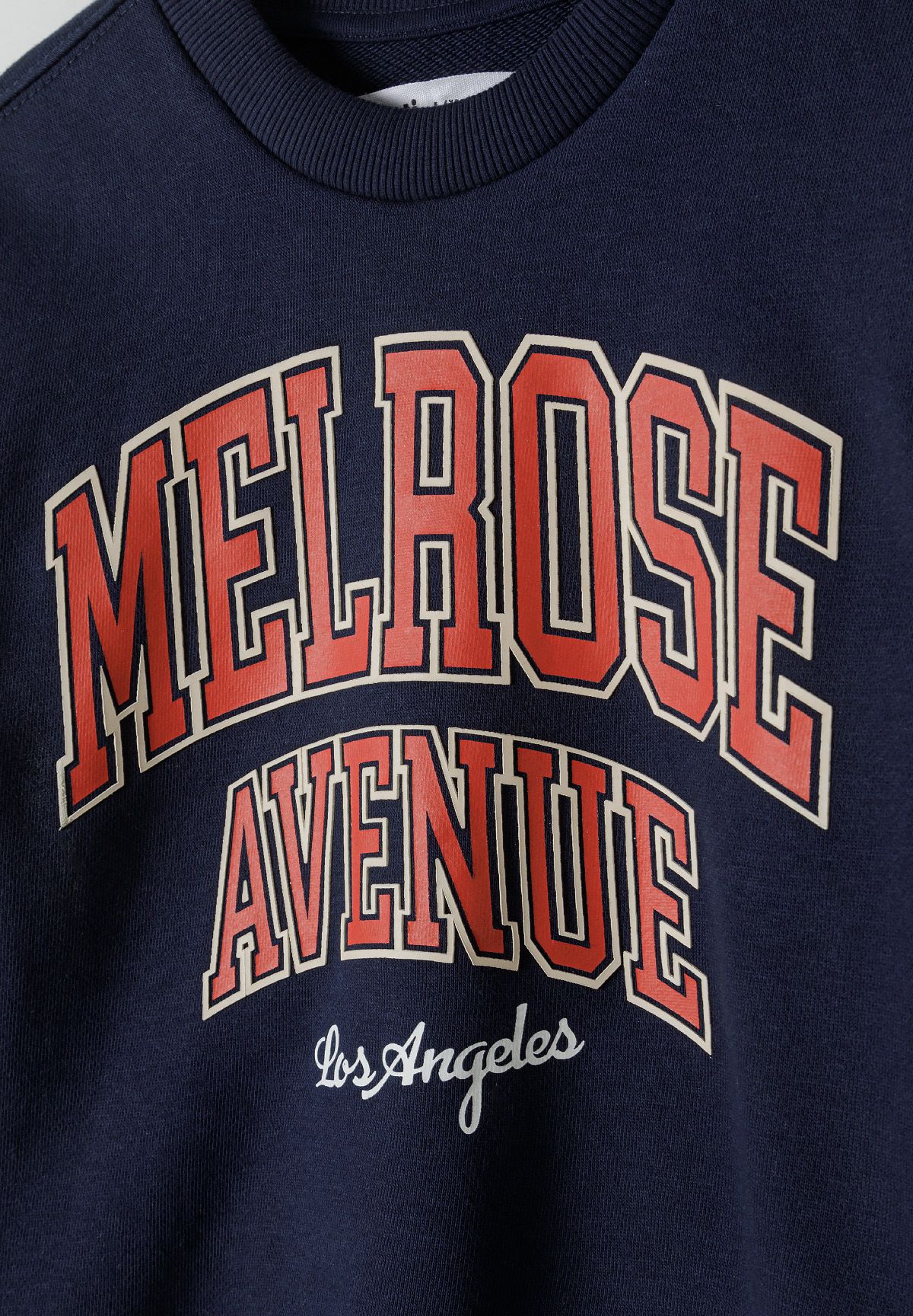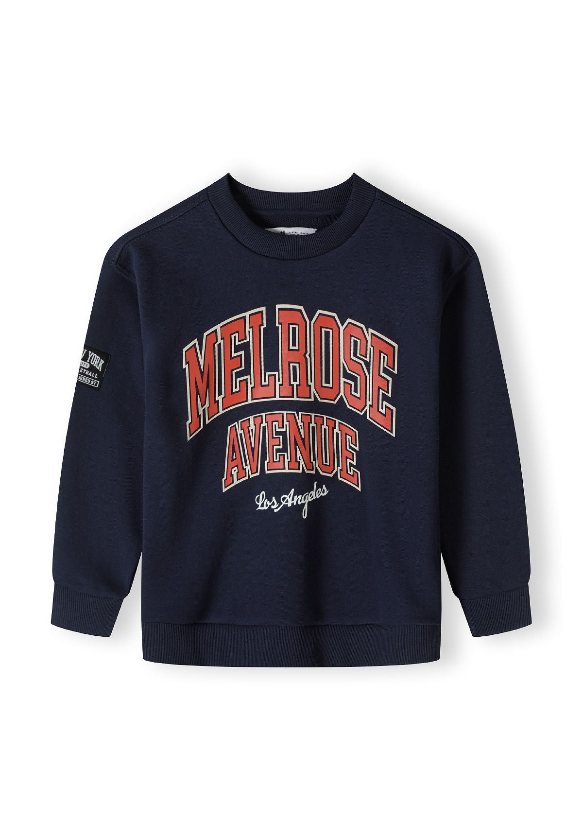 Hergestellt aus weichem Baumwollfleece, sorgt dieses marineblaue Sweatshirt für Jungen für Wärme und Komfort bei kühlerem Wetter. Der klassische Rundhalsausschnitt bietet eine entspannte, aber ordentliche Passform, während gerippte Bündchen an Ärmeln und Saum für einen sicheren Sitz sorgen und die Wärme speichern. Der dekorative Frontprint und der Ärmel-Patch verleihen Stil, und die langen Ärmel mit atmungsaktiver Baumwolle unterstützen natürliche Bewegungen und das Schichten.