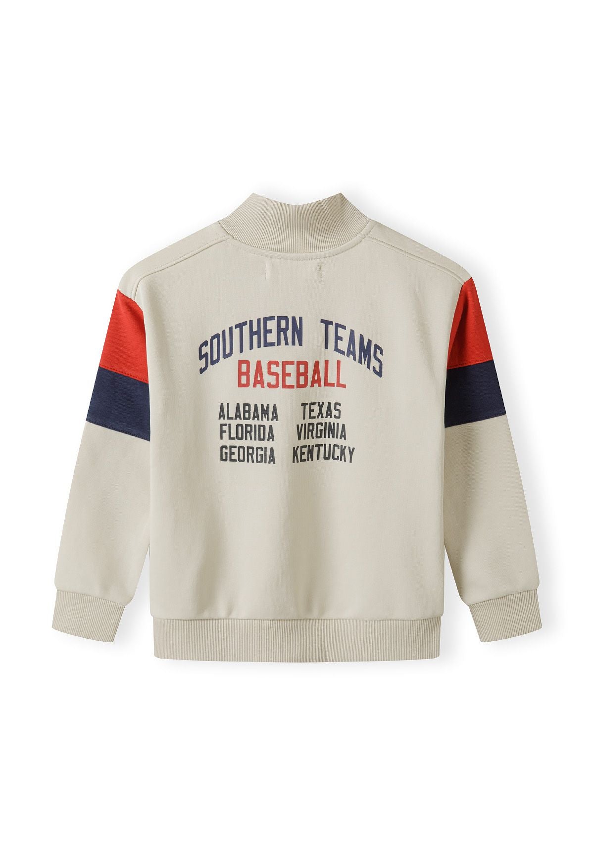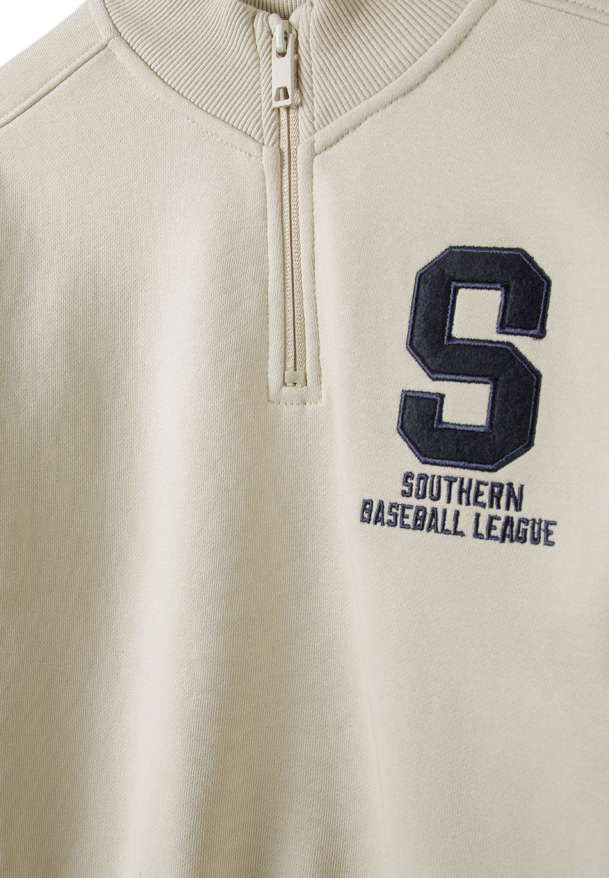 Hergestellt aus bedrucktem Fleece-Stoff, garantiert dieser cremefarbene Jungen-Pullover Weichheit und Wärmeisolierung, was ihn ideal für den täglichen Gebrauch macht. Der Halbzip-Kragen lässt sich verstellen, um für Belüftung zu sorgen und das An- und Ausziehen zu erleichtern. Die lockere Passform mit abgesenkten Schultern bietet zusätzliche Bewegungsfreiheit und erhöht den Tragekomfort, während dezente kontrastierende Einsätze an den Ärmeln ein minimalistisches Designelement setzen.