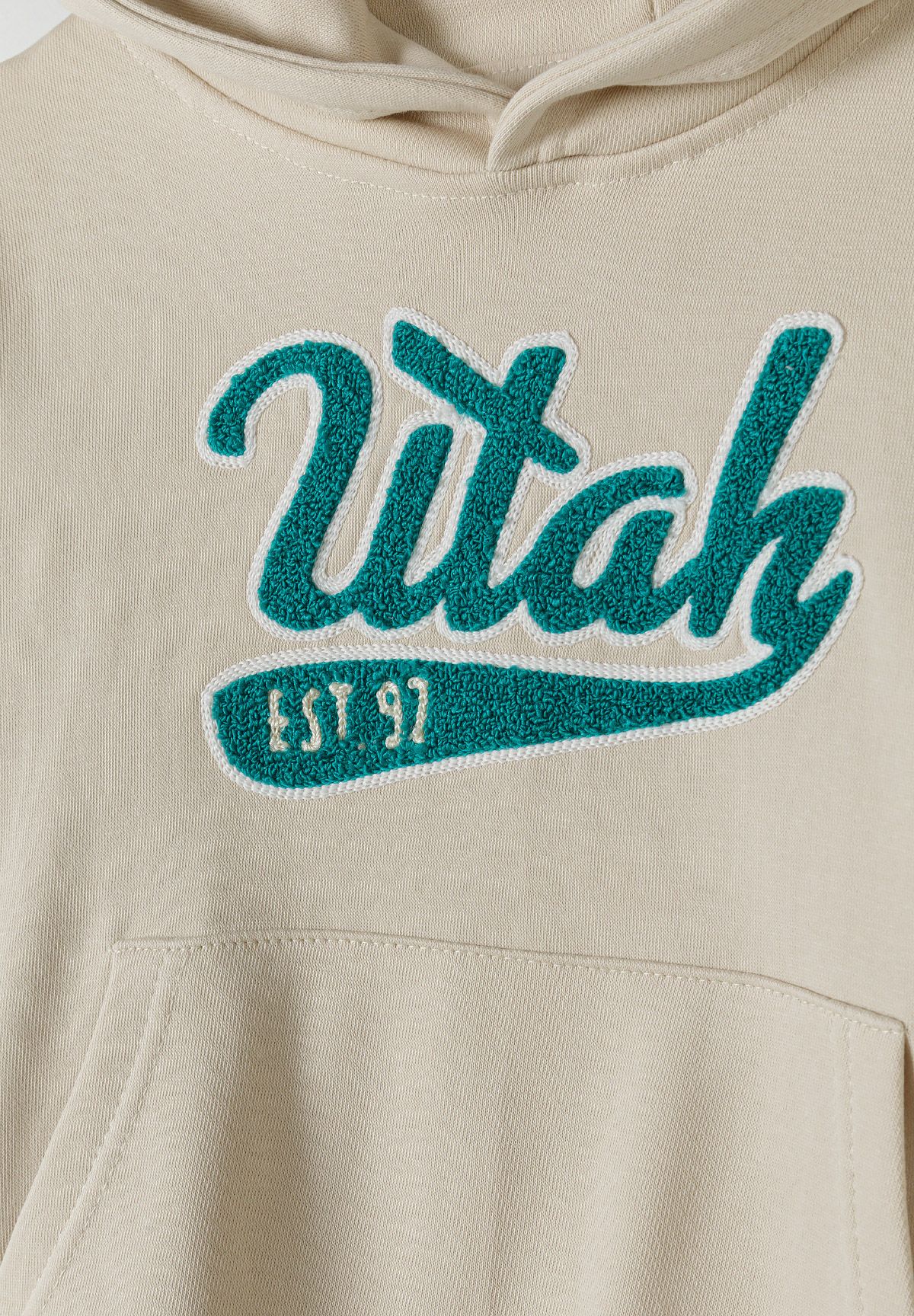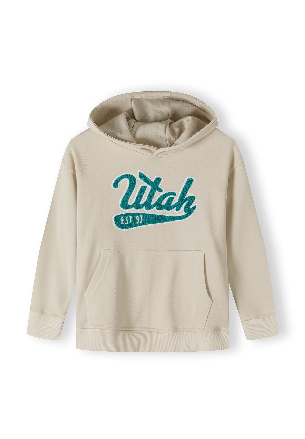 Hergestellt aus weichem Baumwollfleece, sorgt dieser cremefarbene Hoodie für Jungen für Komfort und Atmungsaktivität während des Tragens. Die lockere Passform bietet Bewegungsfreiheit und einen lässigen Look, während die tiefer gesetzten Schultern die entspannte Silhouette betonen. Die Kapuze bietet zusätzlichen Schutz für den Kopf, und gerippte Bündchen an Ärmeln und Saum sorgen dafür, dass Ärmel und Saum an Ort und Stelle bleiben, ohne den Tragekomfort einzuschränken. Der dekorative Brustdruck setzt ein dezentes Design-Highlight, und die Kängurutasche bietet praktischen Stauraum oder Wärme für die Hände.