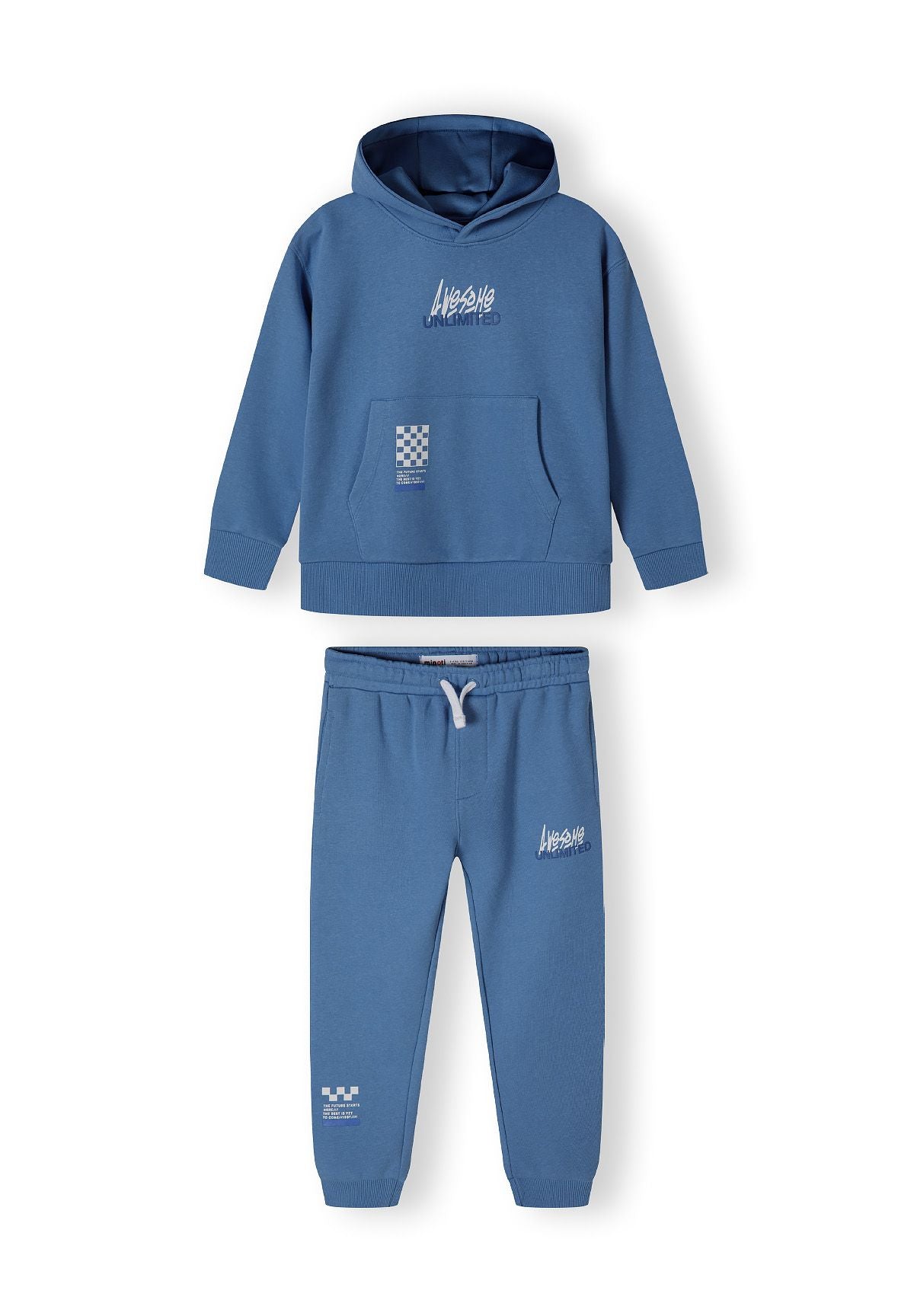 Ein Jungenbekleidungsset, das für den täglichen Freizeitgebrauch im Frühling und Sommer entworfen wurde, bestehend aus einem Fleece-Hoodie und passenden Jogginghosen. Das Set verwendet leichtes Baumwollfleece, das Komfort und Atmungsaktivität bietet und sich ideal für aktive Kinder eignet. Der blaue Hoodie verfügt über eine funktionale Kapuze für zusätzlichen Schutz, eine Kängurutasche zum Verstauen kleiner Gegenstände, bedruckte Details auf der Vorderseite sowie elastische Bündchen und Saum für einen sicheren Sitz. Die Jogginghosen sind mit einem elastischen Bund und verstellbaren Kordeln ausgestattet, die eine individuelle Passform ermöglichen, seitlichen Taschen für zusätzlichen Komfort und passenden bedruckten Akzenten, die zum Hoodie passen. Elastische Bündchen an den Knöcheln sorgen für Formbeständigkeit und Wärme, wodurch das Outfit sowohl praktisch als auch vielseitig für verschiedene Alltagsaktivitäten ist.