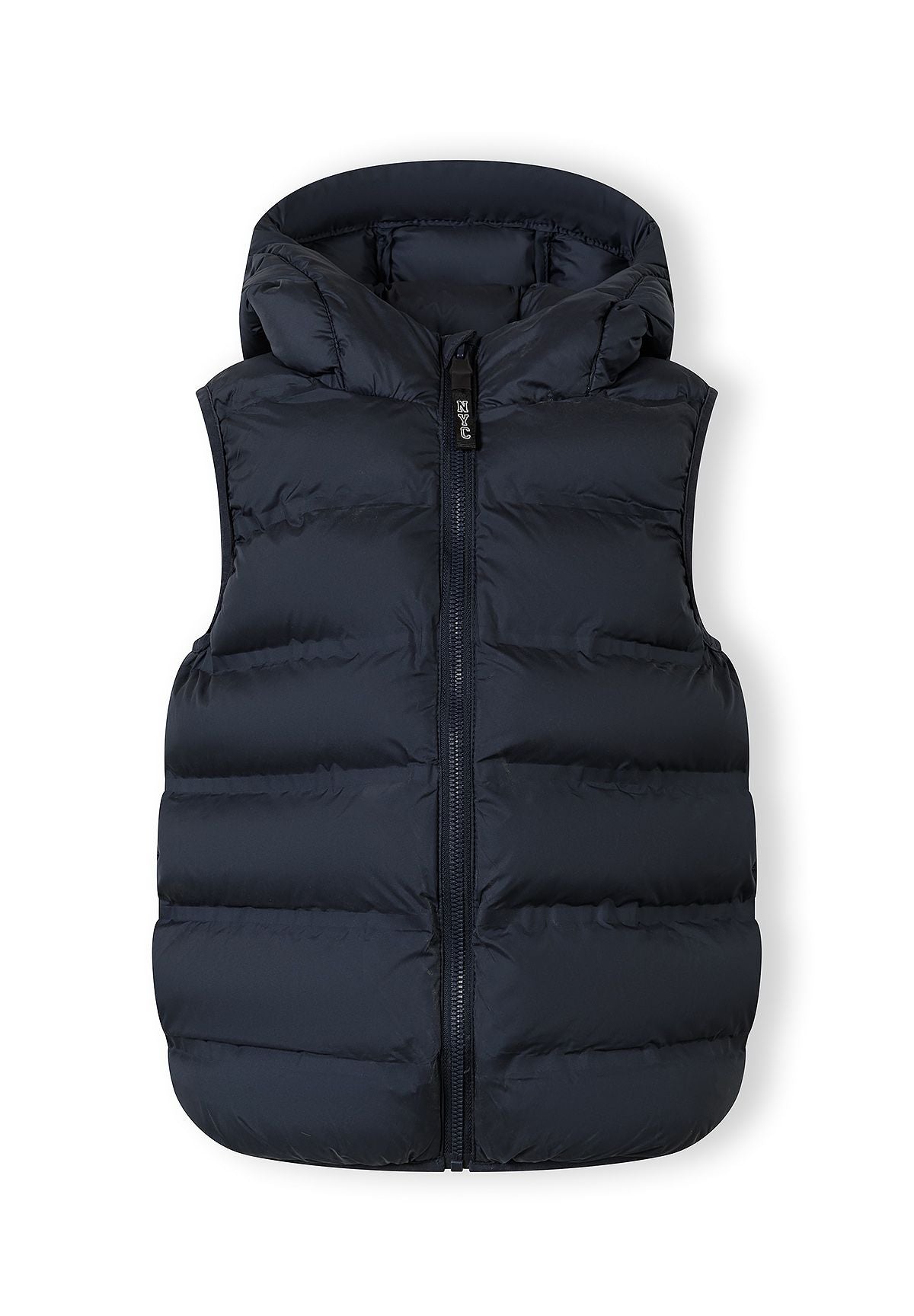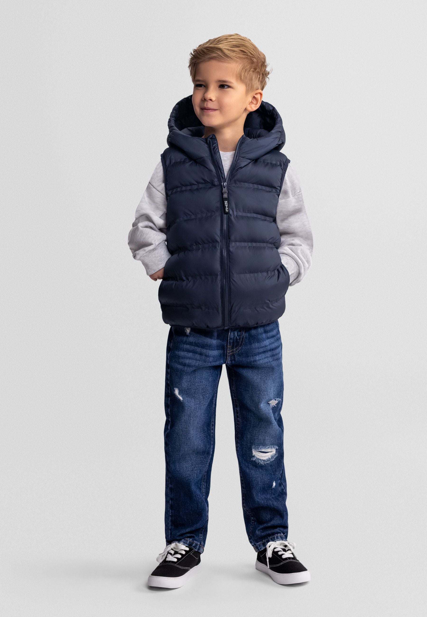Jungen marineblaues leichtes Gilet mit festem Kapuzenreißverschluss, Taschen und wattiertem Futter, 3-15 Jahre