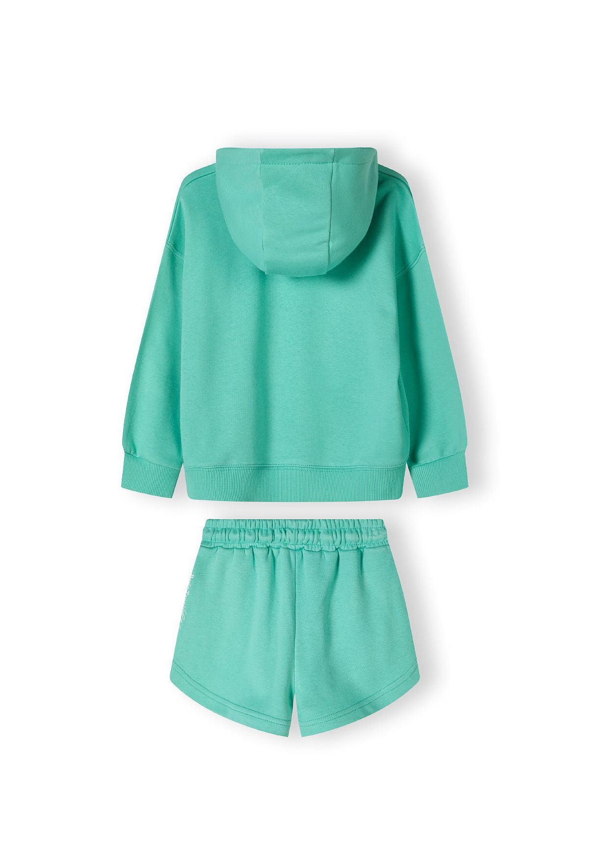 Mädchen Hoodie- und Shorts-Set aus leichtem Baumwollfleece, das Komfort und Atmungsaktivität in wärmeren Jahreszeiten bietet. Der Hoodie zeigt ein aufgedrucktes Design auf der Vorderseite und ist mit gerippten Bündchen und einem gerippten Saum versehen, die für eine enge Passform sorgen und helfen, die Form des Kleidungsstücks während des Tragens zu erhalten. Die Shorts haben abgerundete Kanten, die ein glattes, entspanntes Erscheinungsbild schaffen, und verfügen über funktionale Taschen zur sicheren Aufbewahrung kleiner Gegenstände. Ein elastischer Bund mit verstellbarem Kordelzug ermöglicht eine individuelle Passform. Die grüne Farbe verleiht einen frischen, lässigen Stil, der sich für den Alltag eignet und Bewegungsfreiheit sowie Komfort den ganzen Tag über bietet. Das abgestimmte Set ist für die Freizeitaktivitäten von Kindern bei mildem Wetter konzipiert und verbindet Praktikabilität mit Komfort.