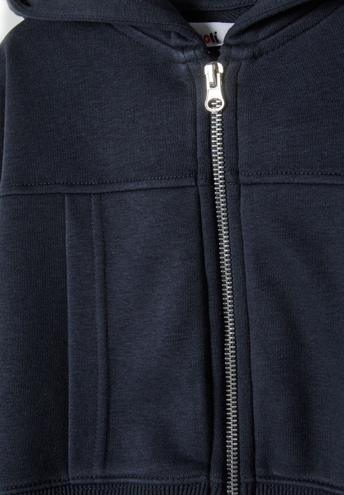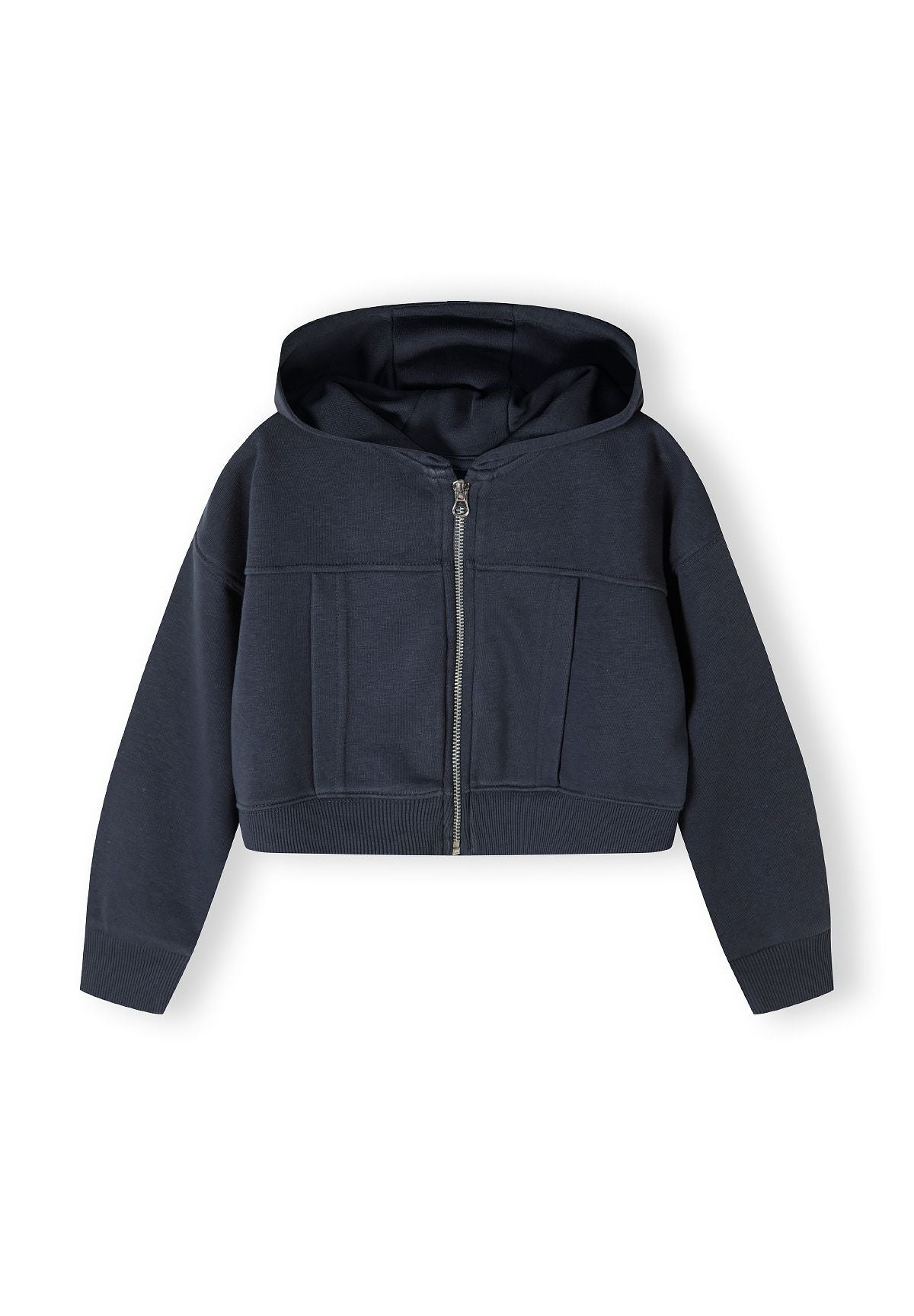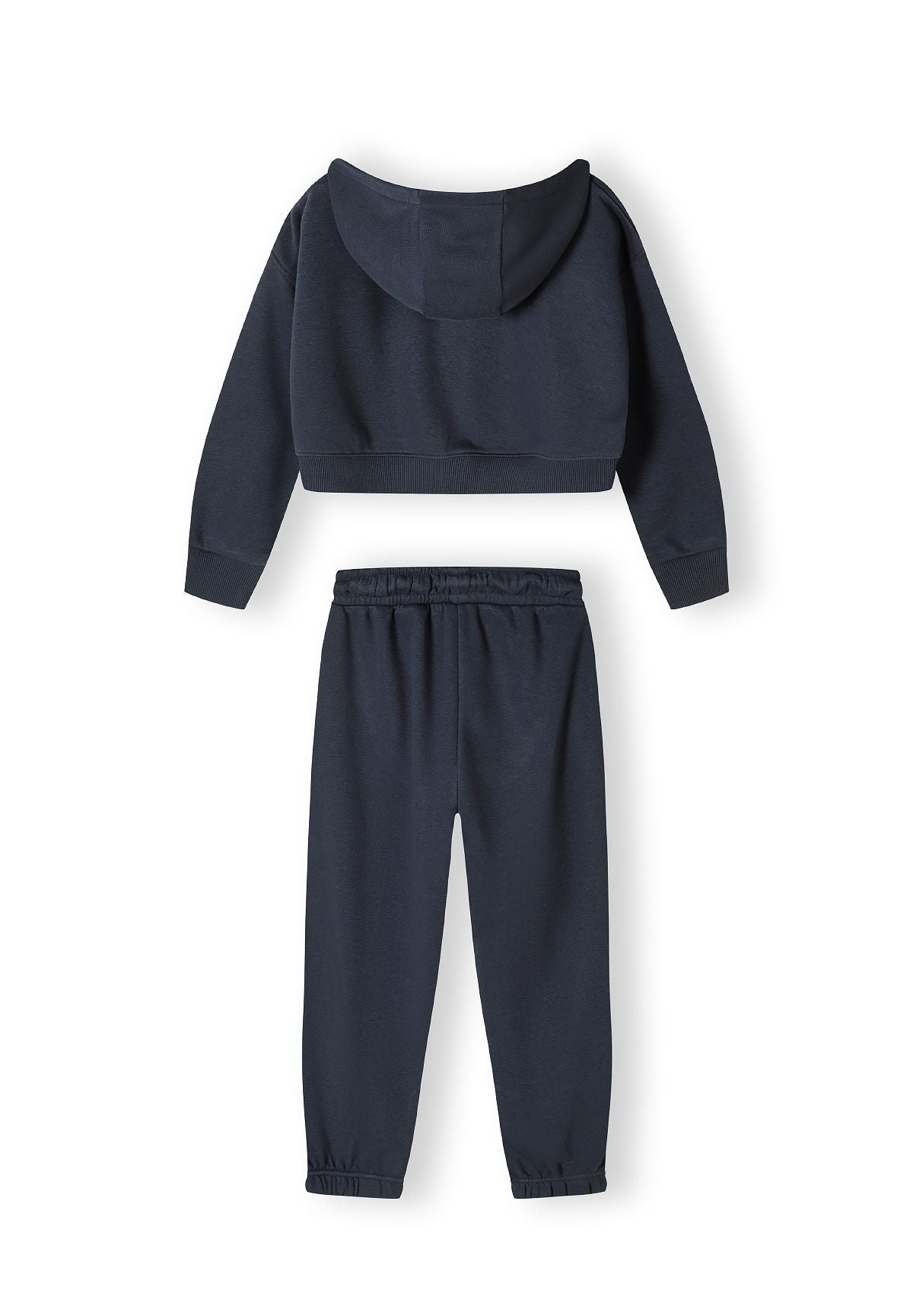 Das Mädchen-Set aus einem kurz geschnittenen Hoodie mit Reißverschluss und Jogginghose besteht aus leichtem Baumwollfleece, das Komfort und Atmungsaktivität bietet und sich ideal für den lässigen Alltag eignet. Der Hoodie ist speziell für Mädchen entworfen und verfügt über einen durchgehenden Reißverschluss, der das An- und Ausziehen sowie die Temperaturregulierung erleichtert. Bündchen an Ärmeln und Saum sorgen für einen sicheren und bequemen Sitz. Die passende Jogginghose ist mit dekorativen Einsätzen an den Beinen versehen und hat einen elastischen Bund mit Kordelzug, der eine individuelle Anpassung ermöglicht. Praktische Seitentaschen bieten Platz für kleine Gegenstände. Das Set ist in einem weichen Grauton gehalten, der seine Vielseitigkeit für den Alltag unterstreicht und gleichzeitig einen entspannten, sportlichen Stil bewahrt.