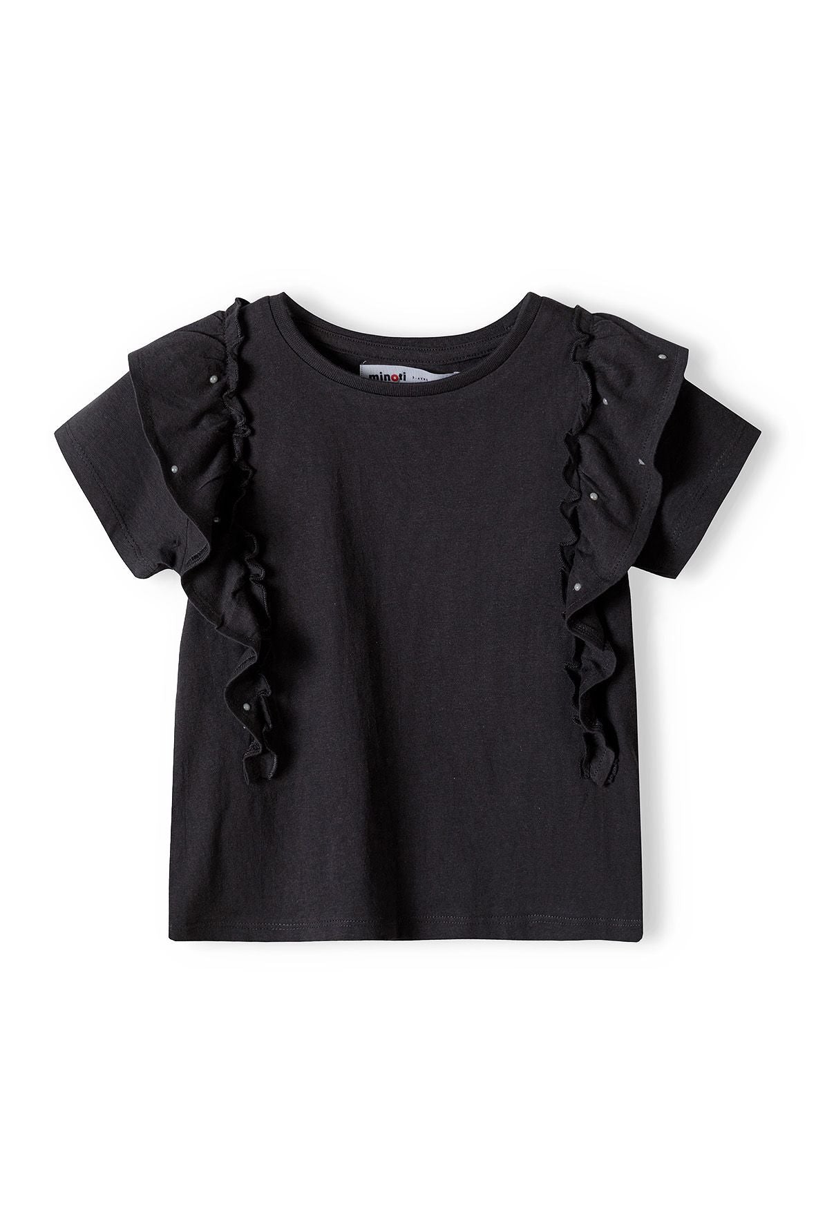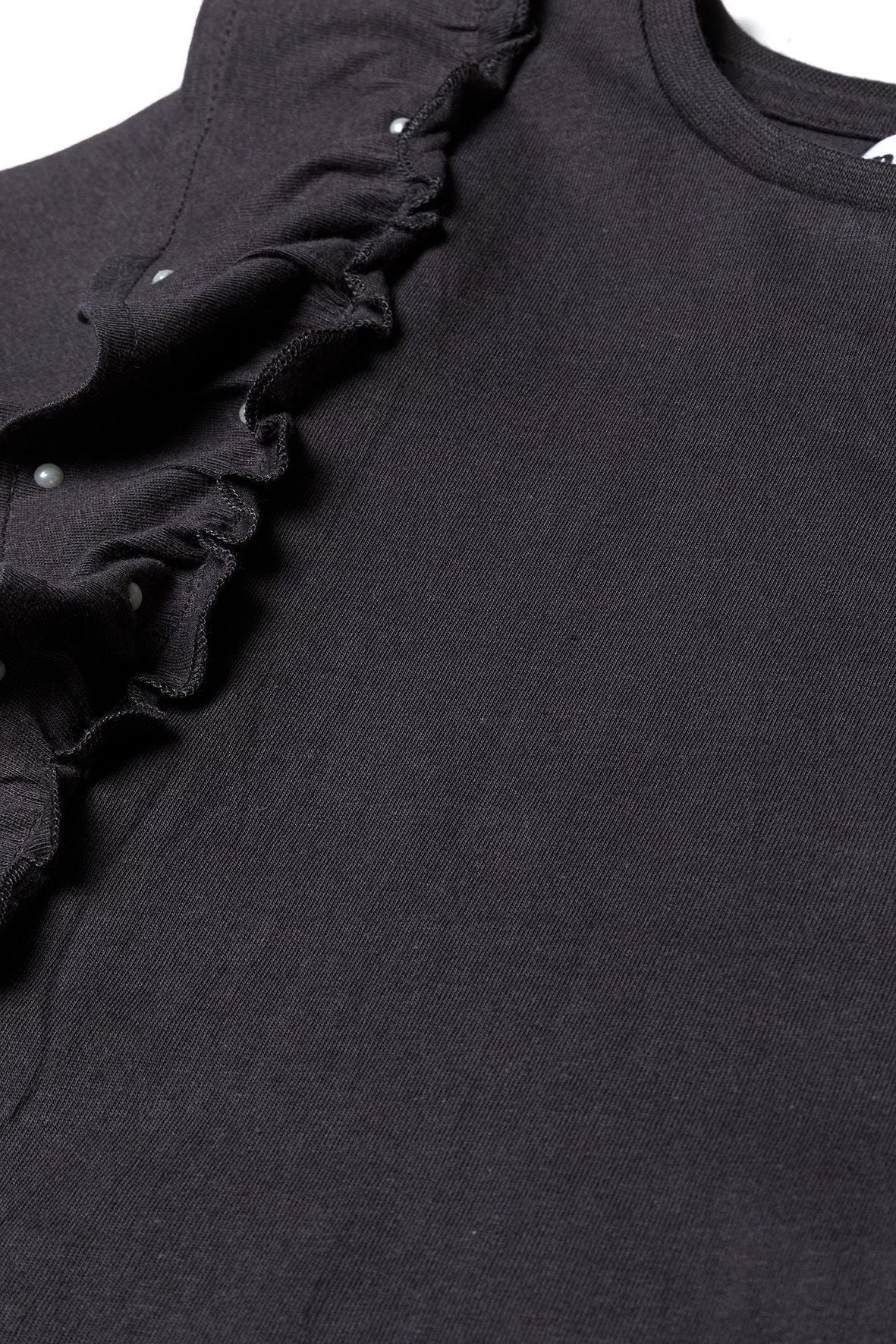 Mädchen-Jersey-Top mit Rüschen und Perlen schwarz 3-14 Jahre