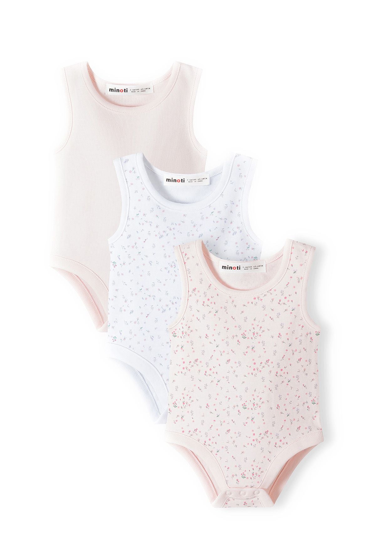 Mädchen 3er-Pack Trägerbodys hellrosa mit kleinem Blumenmuster 0-18 Monate