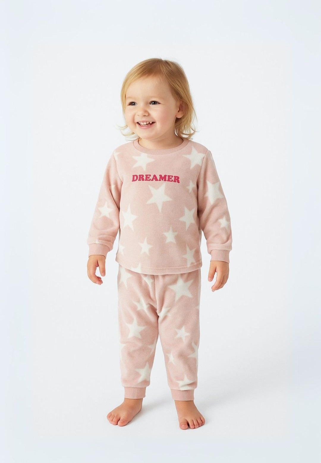 Das entzückende rosa Fleece-Pyjama-Set vereint ultimativen Komfort und Wärme und ist perfekt für Mädchen im Alter von 9 Monaten bis 8 Jahren. Hergestellt aus luxuriös weichem Teddy-Fleece-Stoff, verfügt dieses gemütliche Set über Raglanärmel für erhöhten Komfort und Bewegungsfreiheit, was es ideal für die Schlafenszeit in den kühleren Herbst- und Wintermonaten macht.