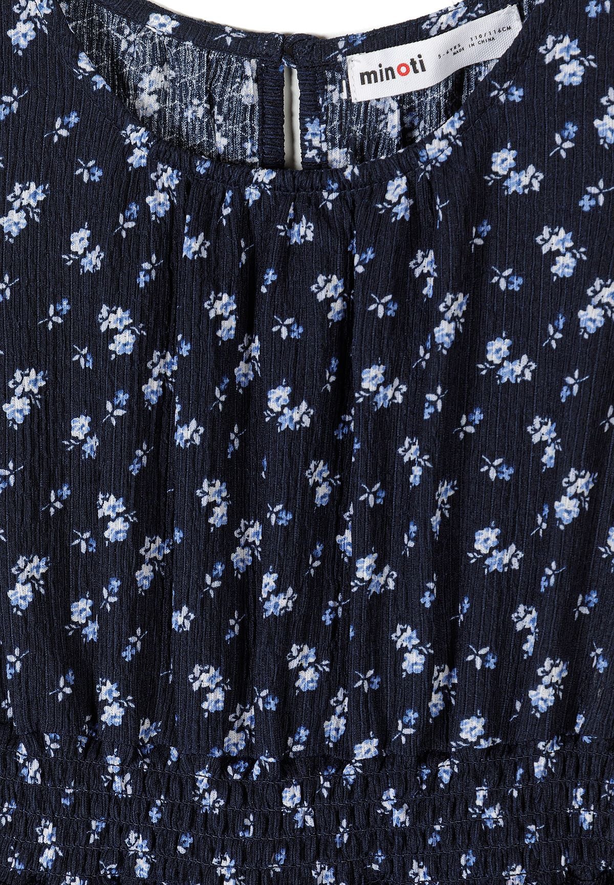 Mädchenkleid blau floral A-Linie Rüschenärmel Rundhals 3-15 Jahre