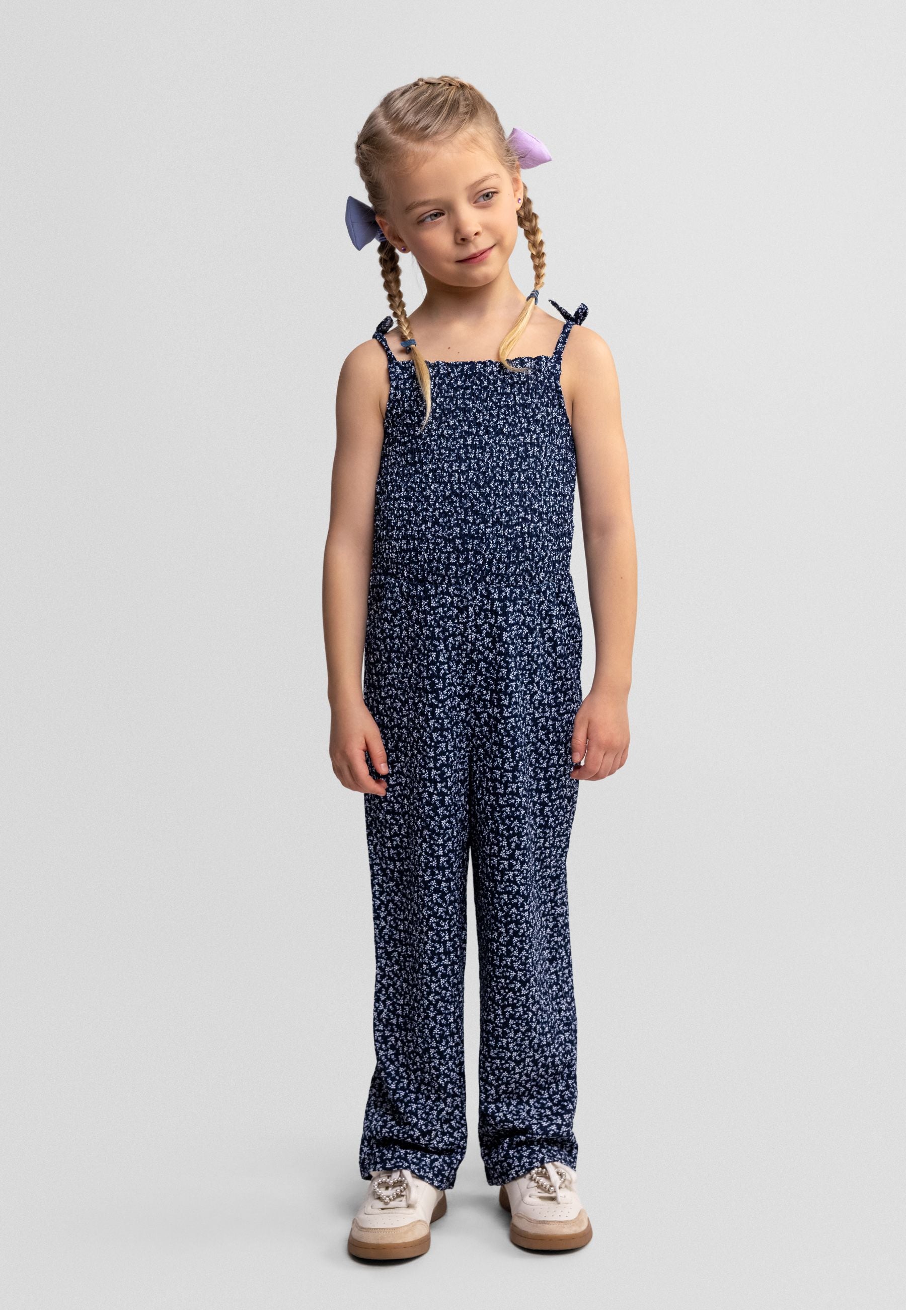 Dieser strukturierte Mädchen-Overall zeigt eine schlanke, gerade Silhouette, gefertigt aus einer strapazierfähigen Mischung aus Polyester und Elasthan für sanfte Dehnbarkeit und Bewegungsfreiheit. Er verfügt über einen markanten eckigen Ausschnitt, lange Ärmel und einen Stehkragen, der einen modernen, praktischen Stil bietet. Mit zwei Seitentaschen für Alltagsgegenstände unterstützt der atmungsaktive Stoff das Tragen zu jeder Jahreszeit und bewahrt dabei die Form und das tiefschwarze Farbenspiel des Overalls. Ideal zum Übereinanderziehen oder als Einzelstück, verbindet dieses Kleidungsstück Komfort mit einem gepflegten Aussehen für junge Trägerinnen im Alter von 2 bis 5 Jahren.