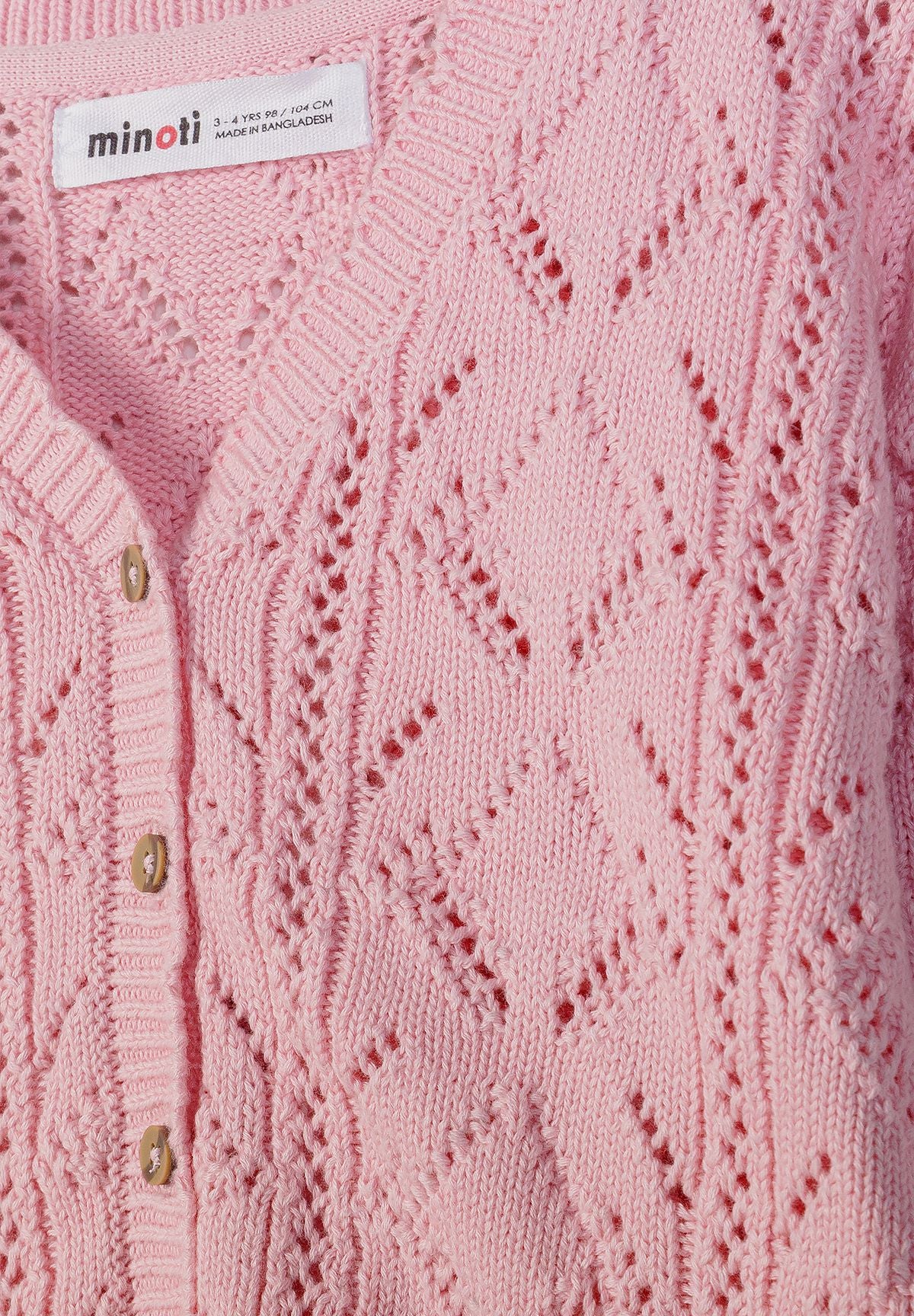 Mädchen Strickjacke hellrosa Baumwolle Pointelle Strick zum Knöpfen 3M-7J