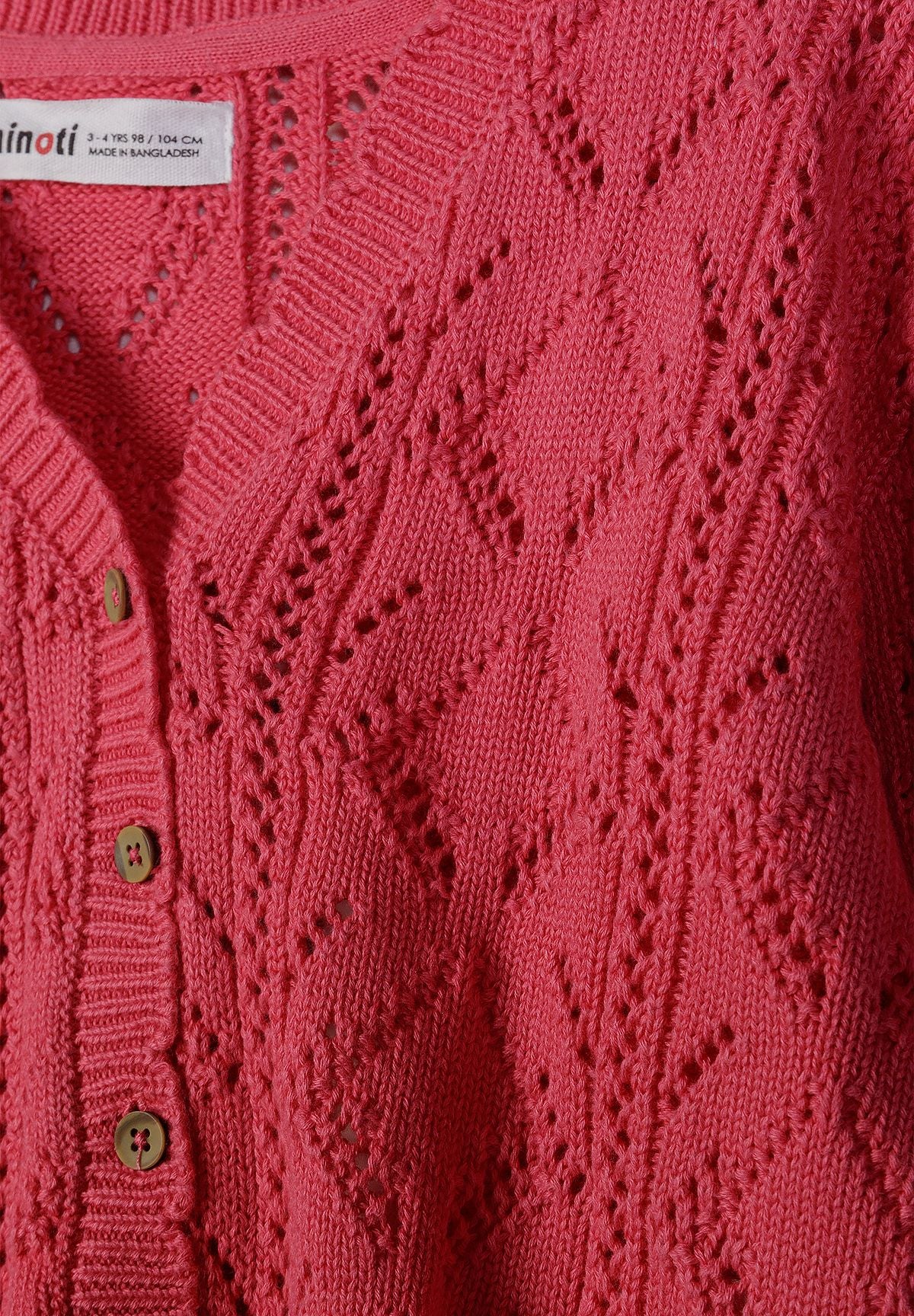 Mädchen Strickjacke rosa Baumwolle Pointelle Strick mit Knöpfen 3m-7j