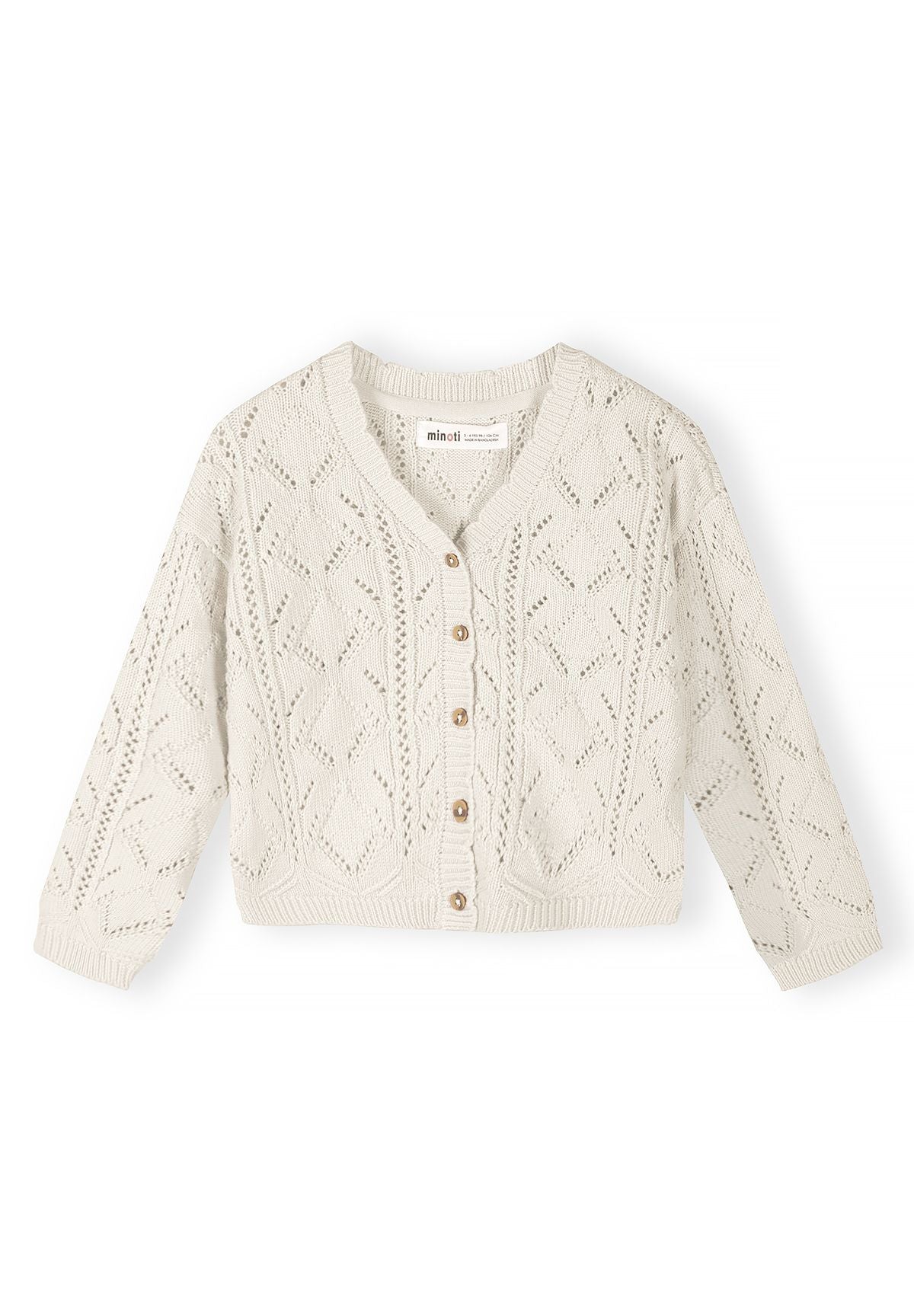 Mädchen Strickjacke weiß Baumwolle Pointelle Strick Knopfleiste 3m-7J