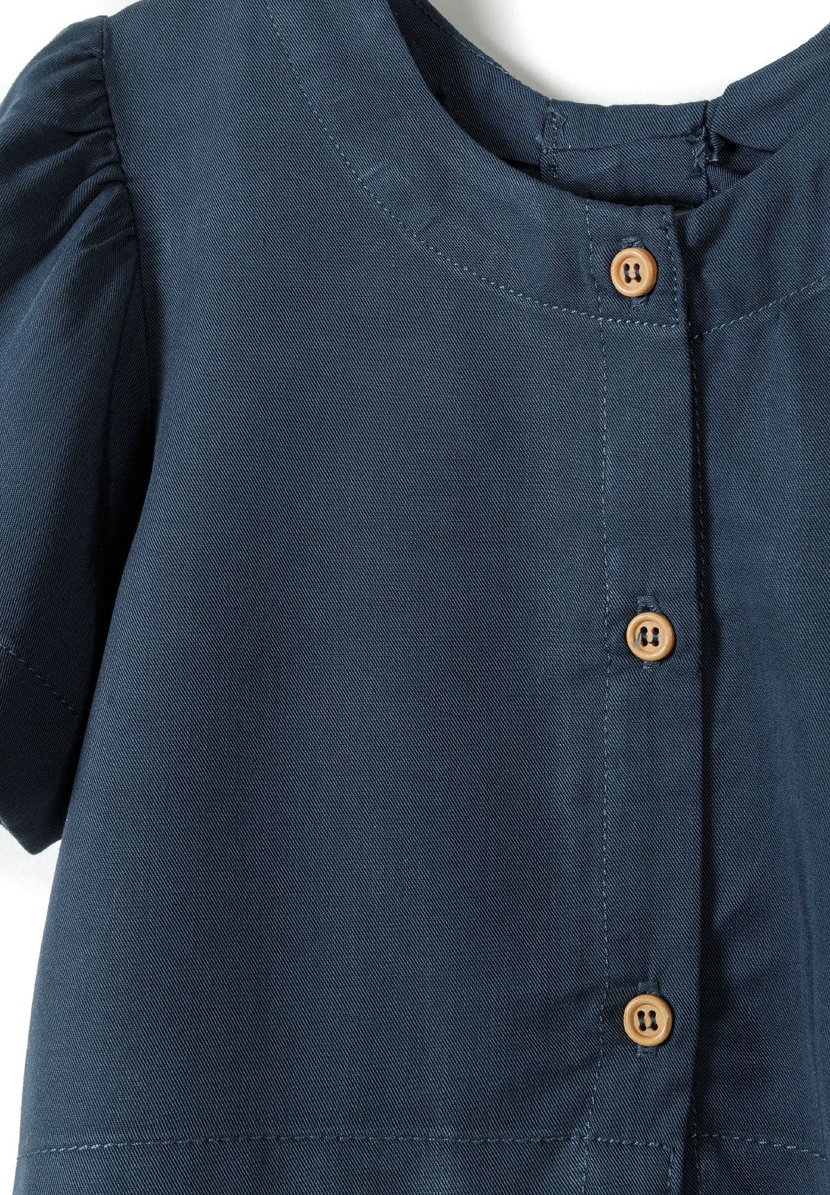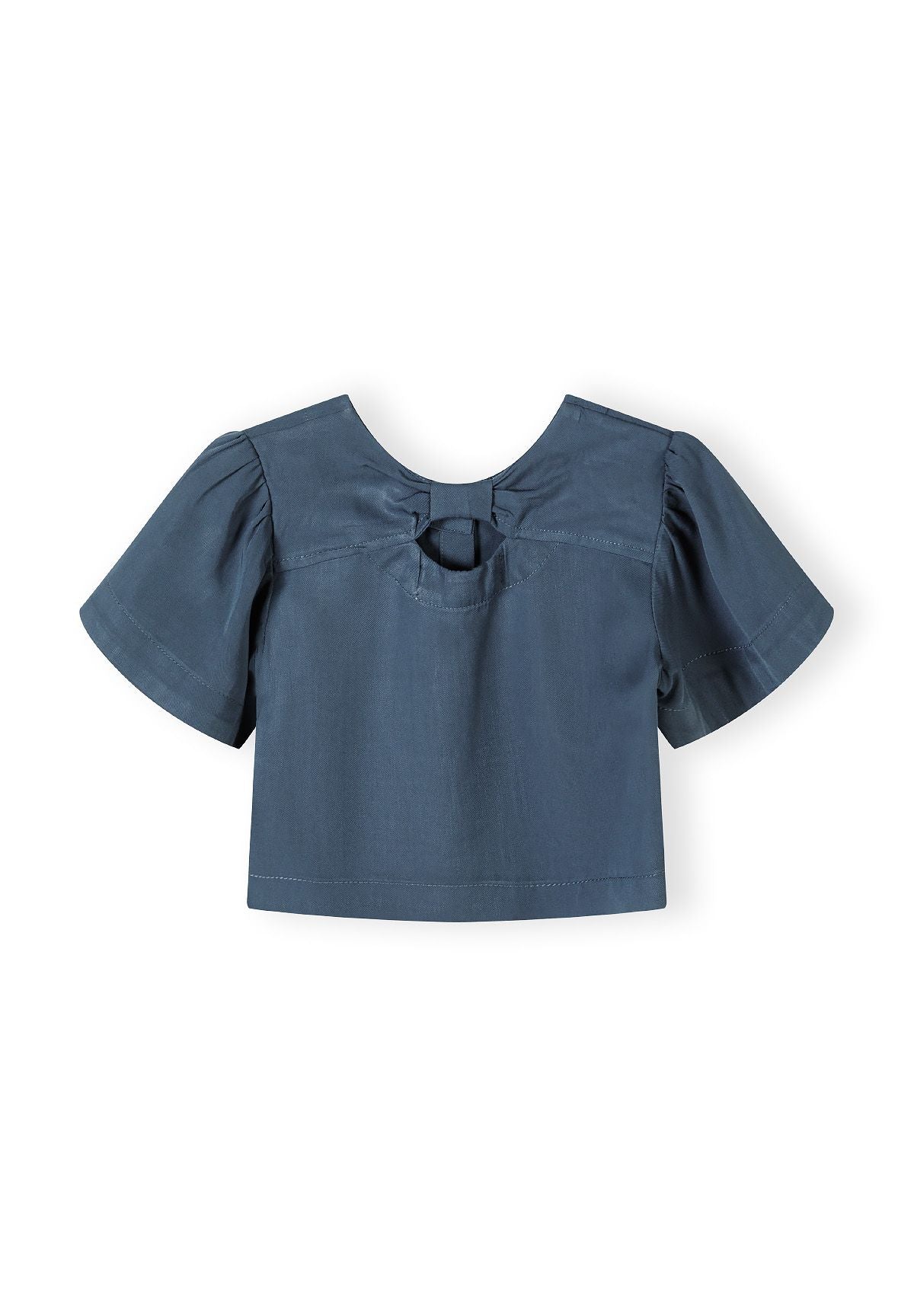 Ein Mädchenbekleidungsset, das sowohl Komfort als auch Stil vereint und aus einer Bluse und einer Hose mit weitem Bein besteht. Die Bluse verfügt über ausgestellte Rüschenärmel, die ein zartes dekoratives Detail bieten, und wird auf der Rückseite mit einem Knopfverschluss gesichert. Ein Ausschnitt und eine Schleife auf der Rückseite verleihen dem Design den letzten Schliff. Die Hose bietet eine weite Bein-Silhouette, die Bewegungsfreiheit und langanhaltenden Komfort ermöglicht. Ein elastischer Bund in der Hose sorgt für eine sichere und zugleich flexible Passform. Praktische Taschen sind in die Hose integriert und bieten zusätzlichen Nutzen. In Blau gehalten, ist das Set für den Frühling und Sommer geeignet und verbindet praktische Aspekte mit klassischen Designelementen, die perfekt in die saisonale Garderobe von Mädchen passen.