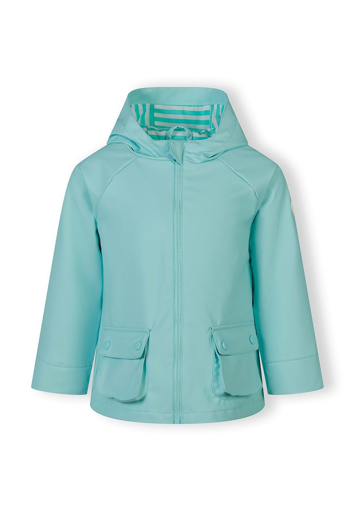 Diese wasserdichte Mädchenjacke in Minzgrün verbindet praktischen Wetterschutz mit durchdachtem Design für Kinder im Alter von 12 Monaten bis 7 Jahren. Sie verfügt über eine strapazierfähige Außenseite aus Polyurethan und ein atmungsaktives Innenfutter aus Jersey, gefertigt aus Polyester und Baumwolle, das Feuchtigkeit reguliert und Komfort bietet. Die Jacke hat eine feste Kapuze, verstellbare Ärmelbündchen für eine individuelle Passform sowie Seitentaschen, alles in einem regulären Schnitt mit gerader Silhouette. Ideal für die Übergangszeit, vereint sie Haltbarkeit und Bequemlichkeit für den täglichen Aufenthalt im Freien.