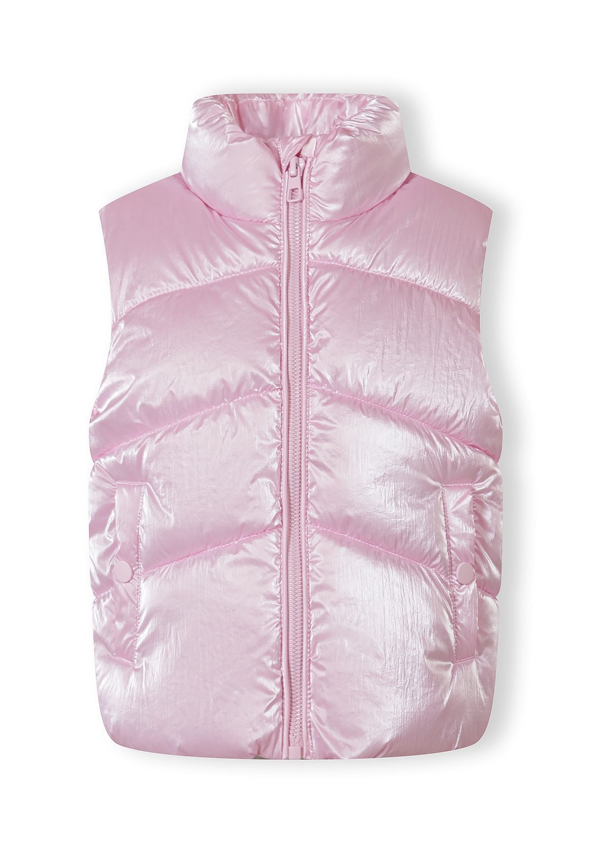 Mädchen gesteppte Weste metallic pink mit Reißverschluss, Seitentaschen und Polyesterfüllung 9 Monate-7 Jahre