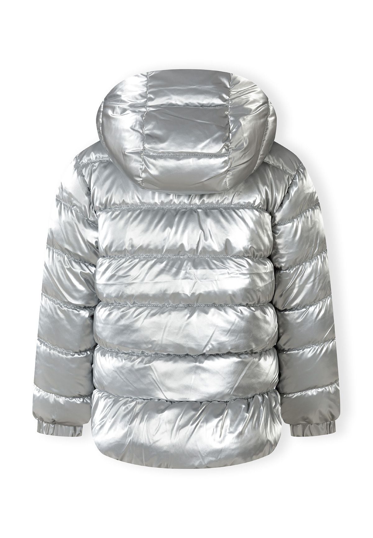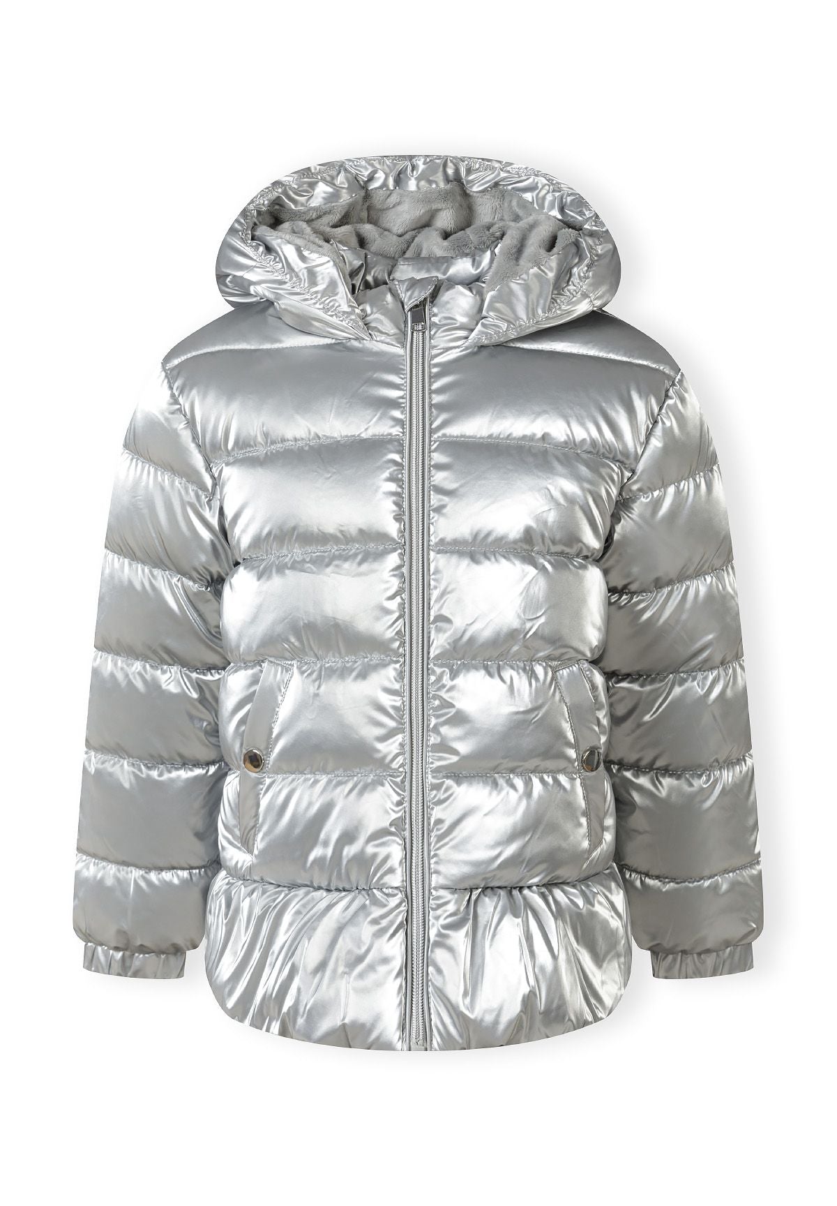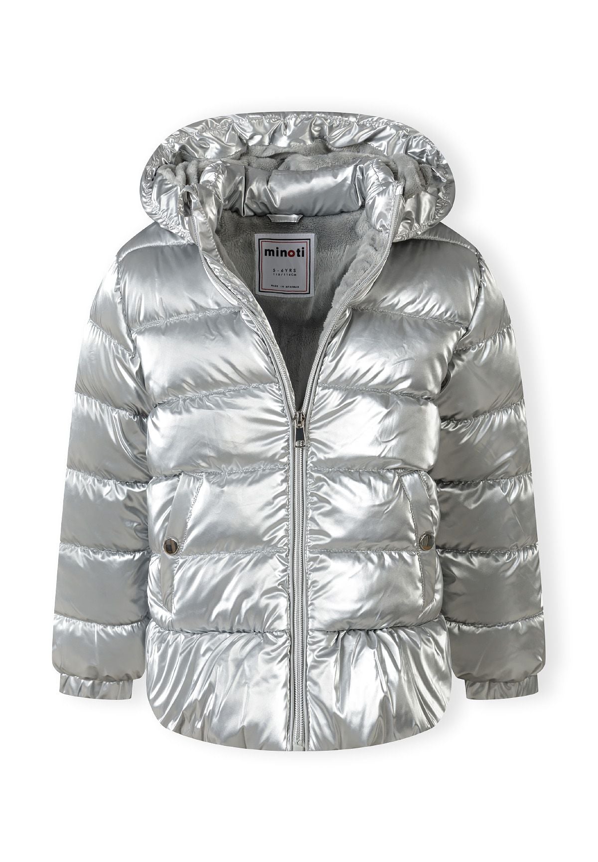 Eine gesteppte Mädchenjacke, die effektive Wärme und Komfort bei kaltem Wetter bietet und mit einem schimmernden metallic-silbernen Finish versehen ist. Die Jacke ist für Mädchen konzipiert und verfügt über ein weiches Fellfutter, das die Wärmeisolierung verbessert und zu einem angenehmen Tragegefühl beiträgt. Der lockere Schnitt ermöglicht Bewegungsfreiheit während des Tragens und sorgt für Bequemlichkeit und Praktikabilität. Der Reißverschluss vorne ist praktisch und gewährleistet einen sicheren Sitz, während das An- und Ausziehen erleichtert wird. Die Jacke hat lange Ärmel mit gerippten Bündchen, die helfen, die Wärme zu speichern, sowie einen schlichten Kragen für ein sauberes Finish. Insgesamt bietet die Jacke ein ausgewogenes Design, das sowohl funktional als auch optisch ansprechend ist und sich als zuverlässige Oberbekleidung für den Alltag in Herbst- und Wintersaisons eignet.