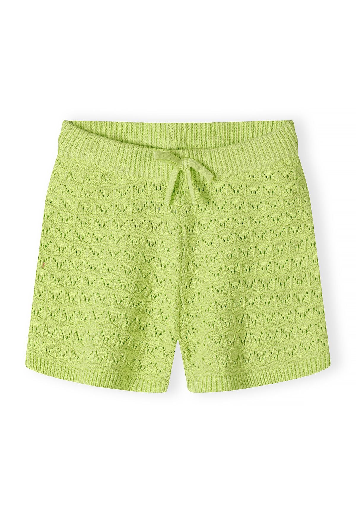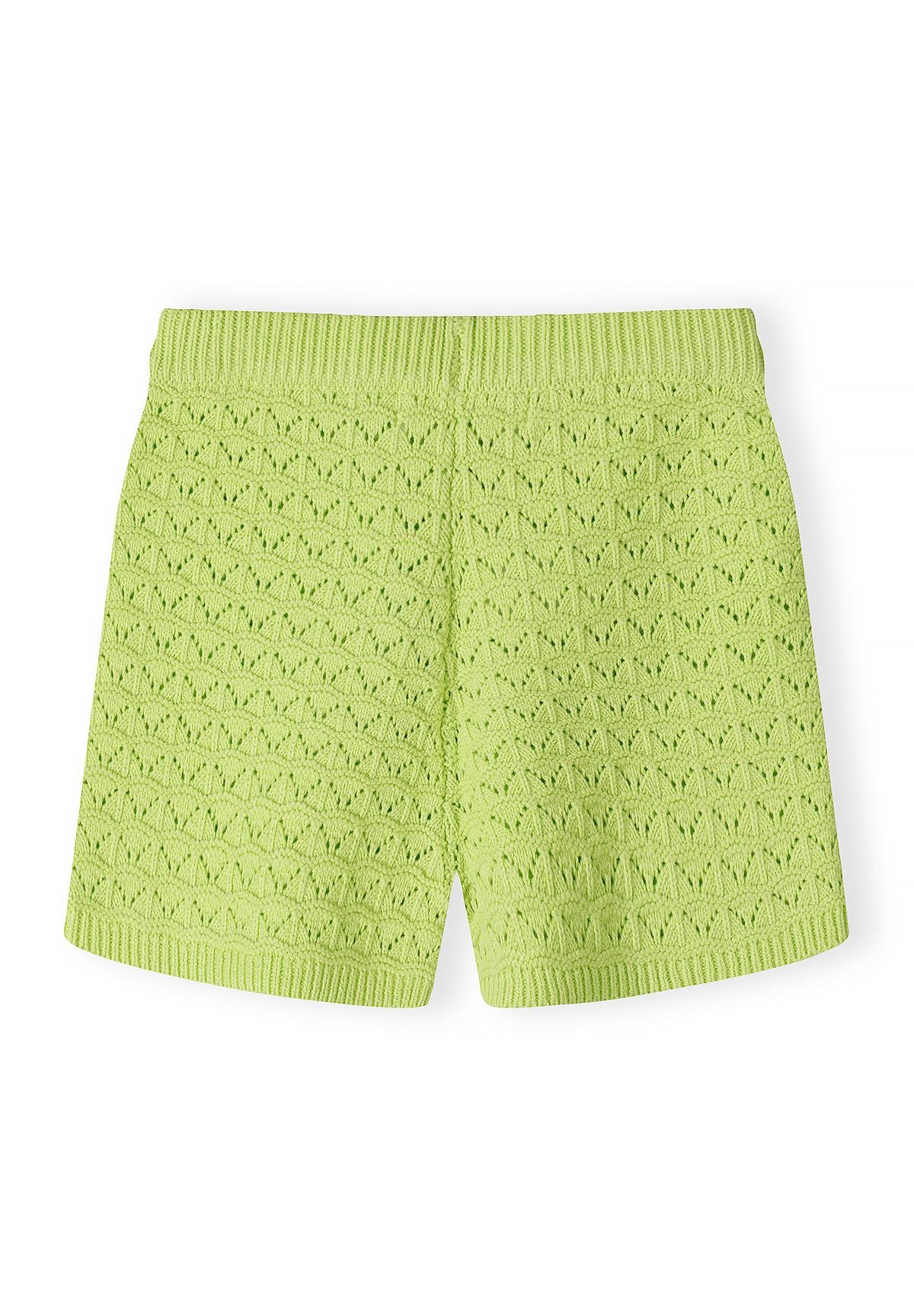 Dieses limegrüne Strickset für Mädchen besteht aus einem kurzärmeligen Oberteil mit Knopfleiste und passenden Shorts. Das Oberteil verfügt über einen klassischen Kragen und eine durchgehende Knopfleiste, die dem Design einen klaren und strukturierten Look verleiht. Die Shorts sind mit einem elastischen Bund und einem Kordelzug für verstellbaren Komfort ausgestattet.
