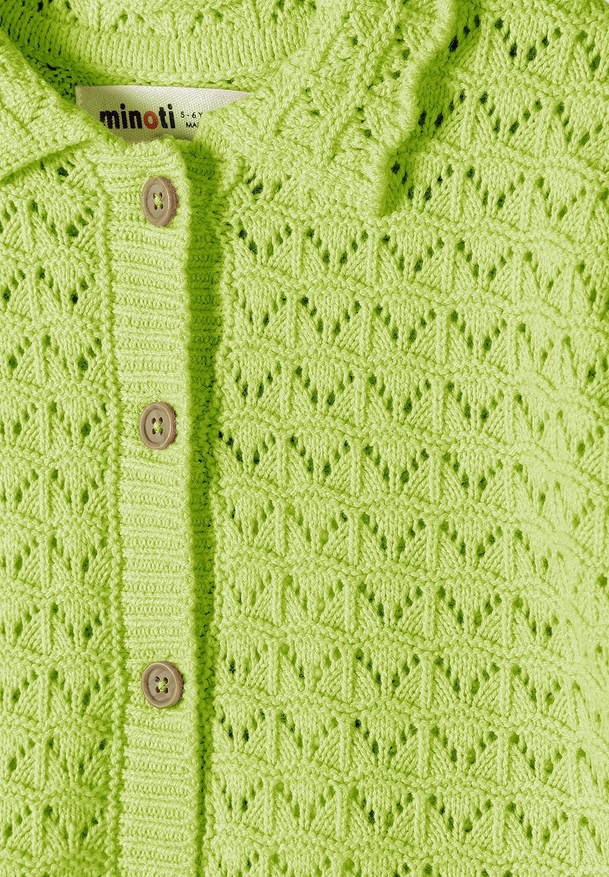 Mädchen Limegrünes Pointelle-Strickset mit Knopfleiste, 3 bis 15 Jahre