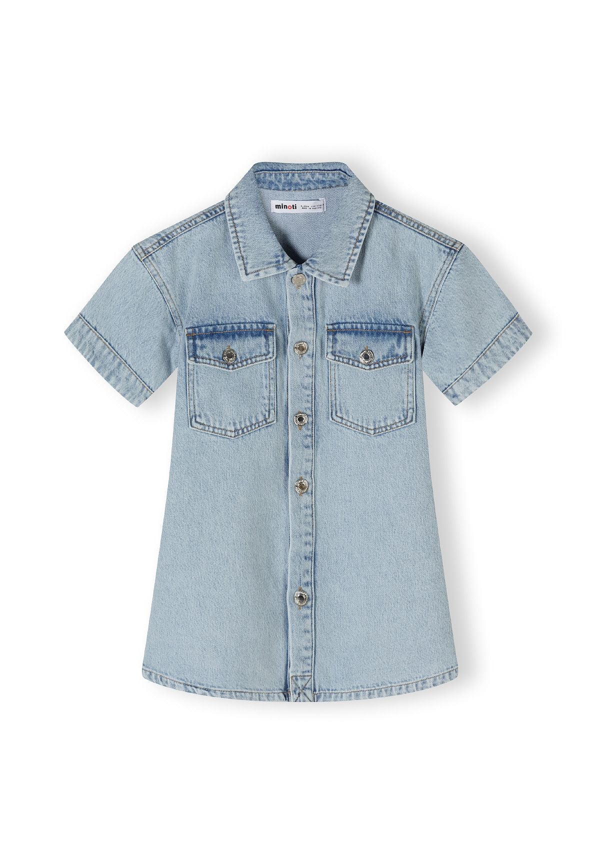 Mädchenkleid hellblau Denim kurzarm mit Kragen und Druckknöpfen 2-14 Jahre