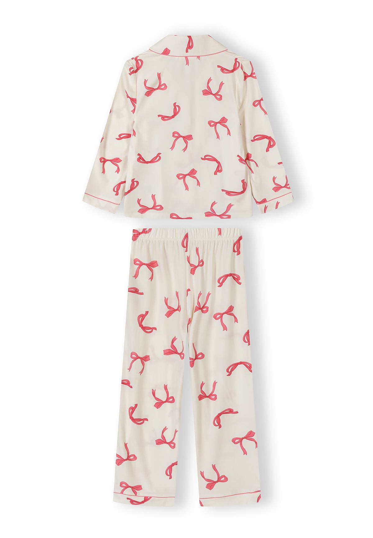 Mädchen Langarm-Pyjama-Set Weiß mit Schleifendruck, Reverskragen und elastischem Bund, 3-15 Jahre