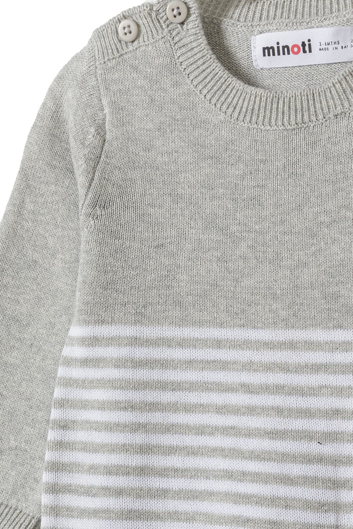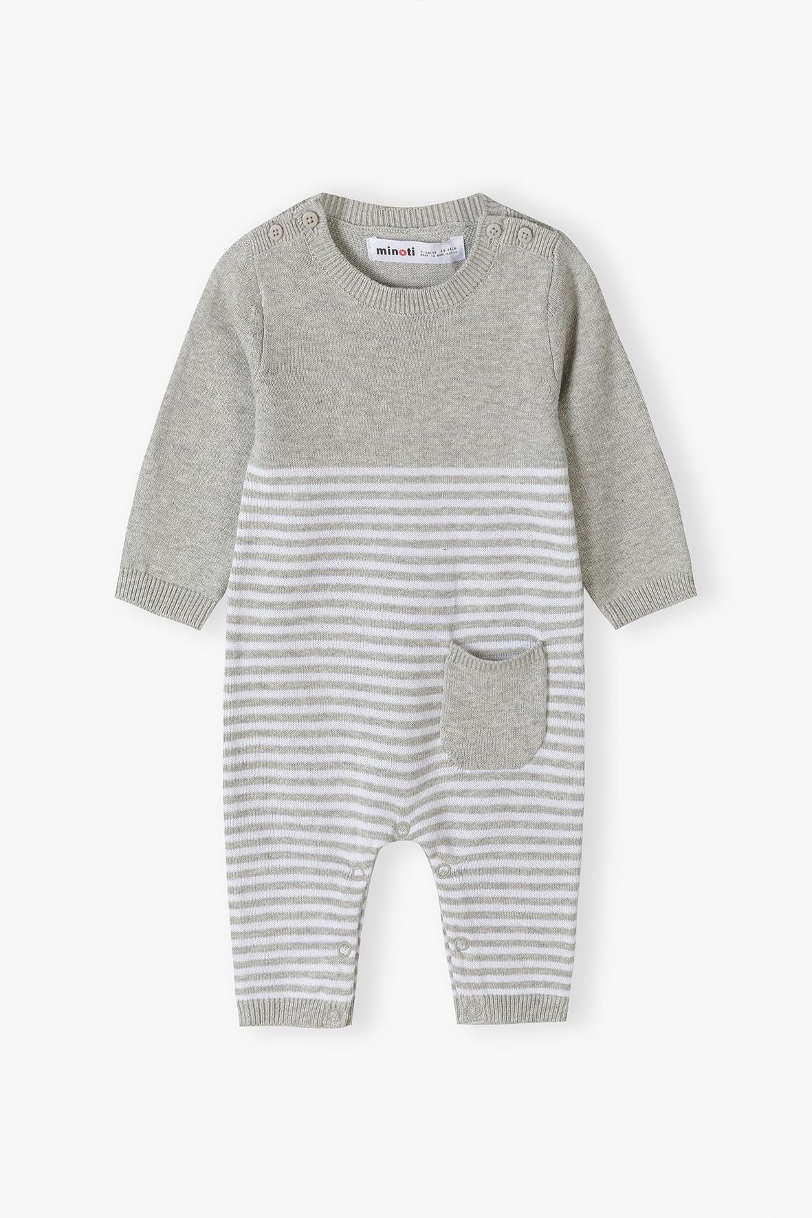 Unisex Strickstrampler Grau gestreift Langarm mit Tasche 0-18 Monate